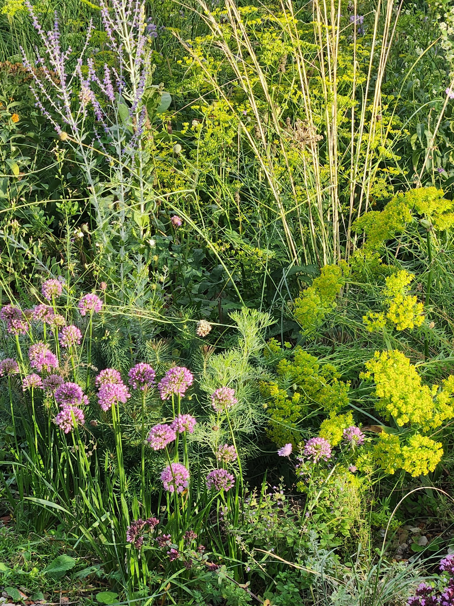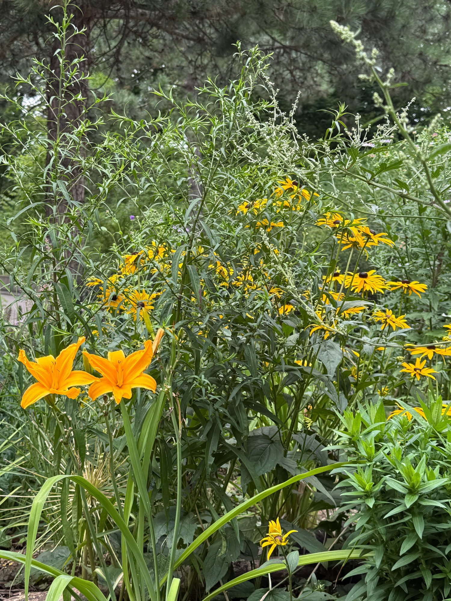 Thalictrum rochebrunianum blüht in verschiedenen Gartenecken, ebenso L. lancifolium und R. nitida, und die `Gute Luise ´leistet auch ihren Beitrag zum farbenfrohen August.