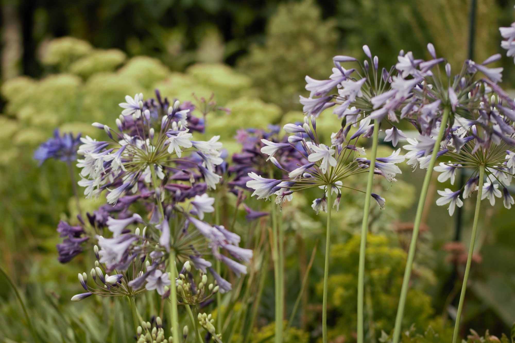 Agapanthen uff der Hauptweg und in Beet (nur in Töpfen)