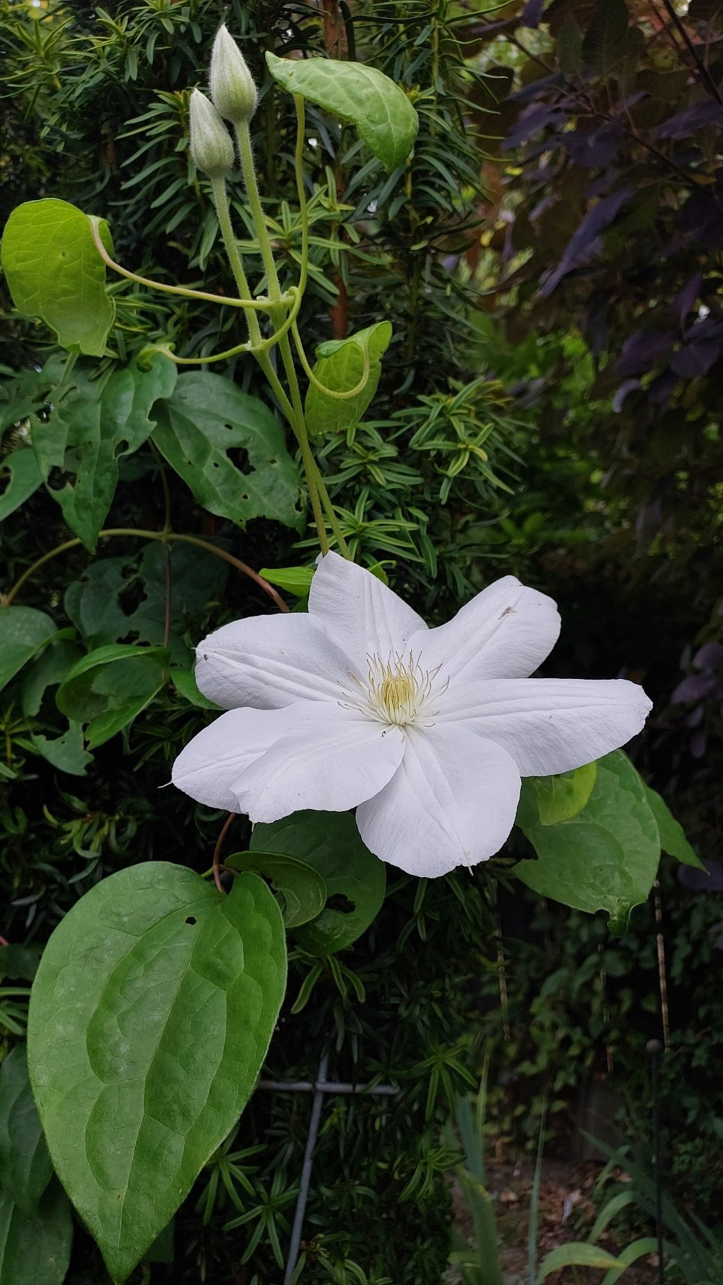 Clematis Madame le Coultre musste ich wg. Clematiswelke ganz zurück schneiden. Jetzt blüht sie wieder.