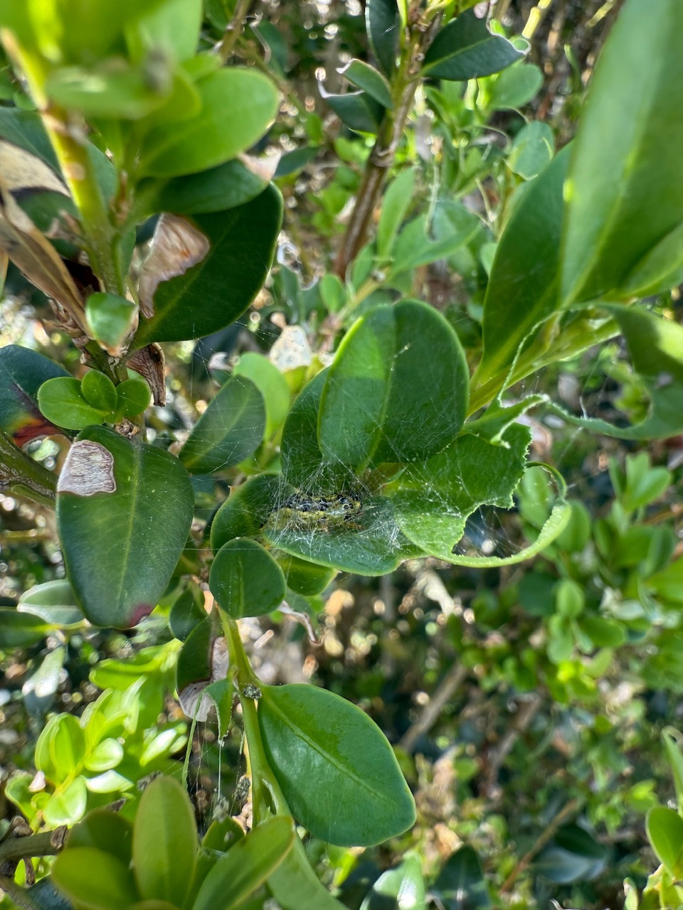 Im Sommer räumen Wespen und Vögel auf, da regeneriert der Buchs ganz gut. Hoffentlich findet sich fürs Frühjahr noch ein Fressfeind.