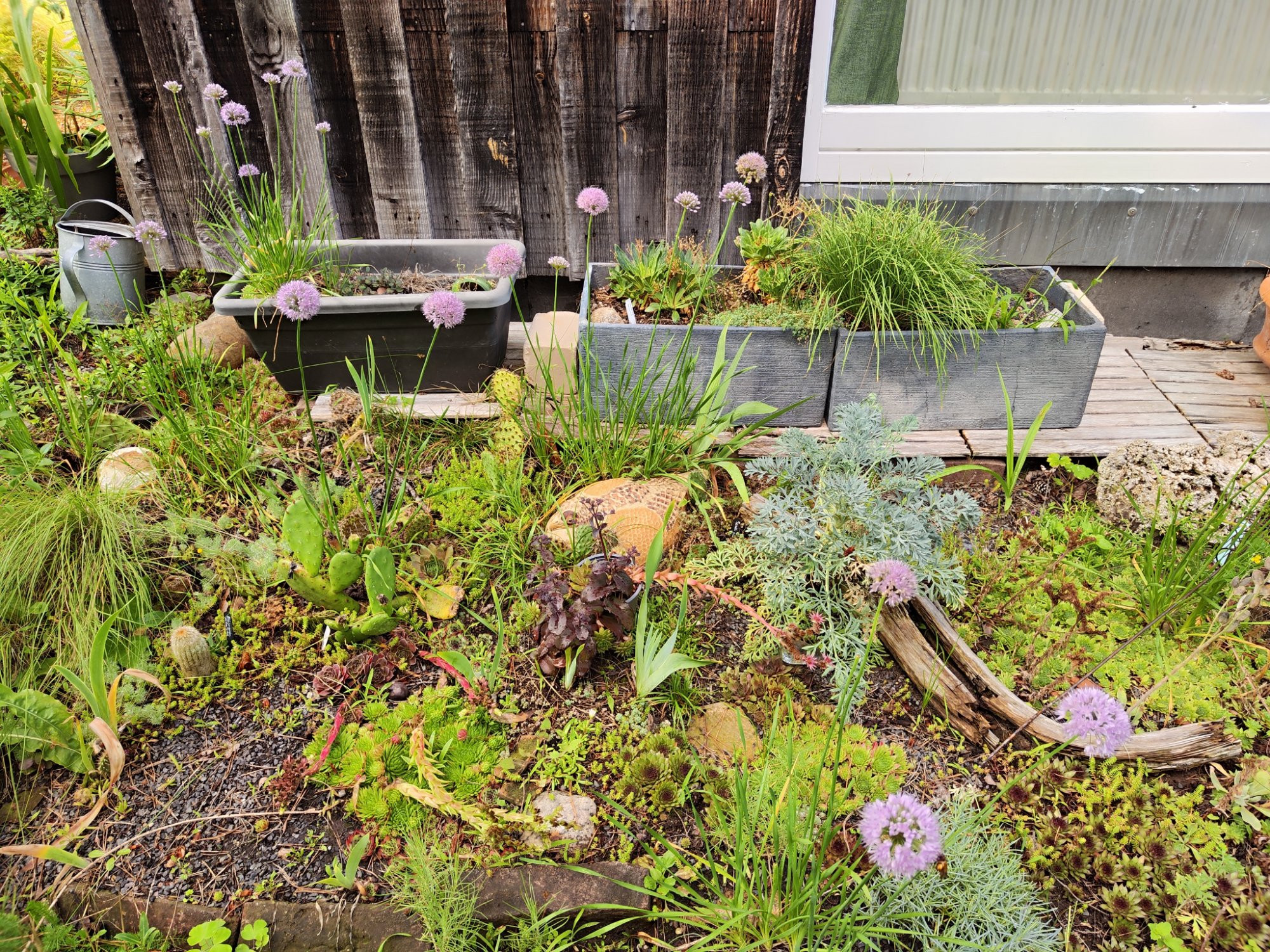 Cannabina blüht schon lange, Penstemon smallii eher nach, Allium/Verbena erst seit einer Woche