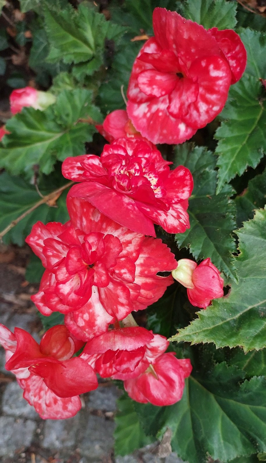 Der Regen hat gut getan. Auch bei mir Alliums. 1x eine grössere, ohne Schild. Die kleinere ist Berglauch. Knollenbegonia, 4. Jahr. Ich mag die Farbe sehr.