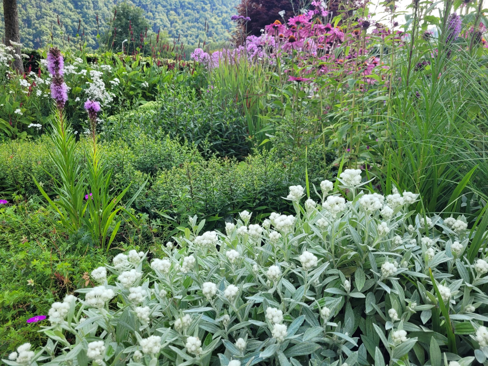 Die Silberimmortelle ist ein wertvoller Bodendecker zu dieser Zeit, wo nur wenige niedrige Stauden blühen.