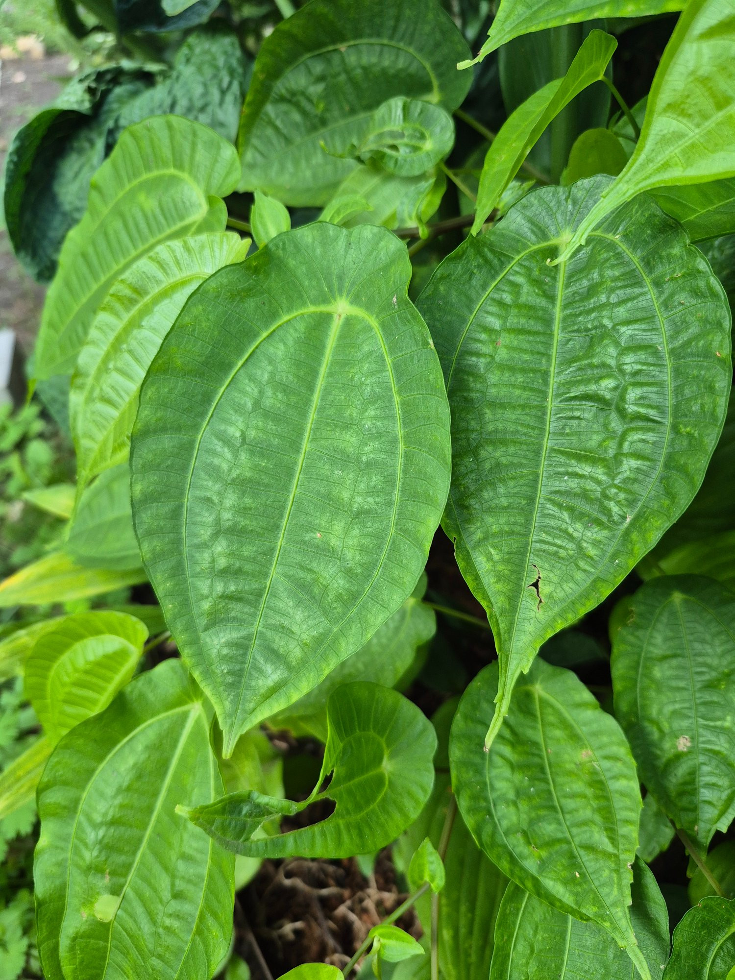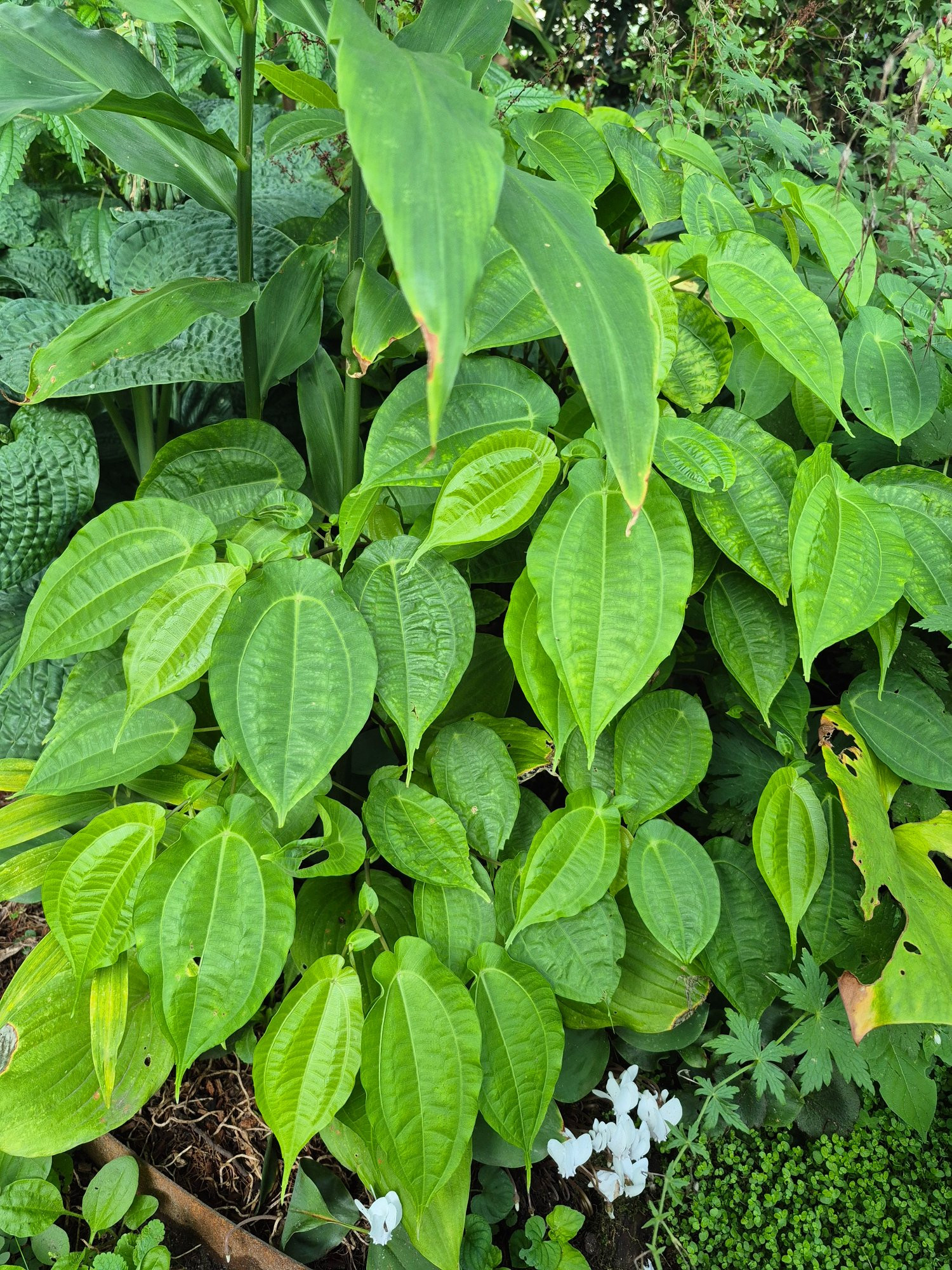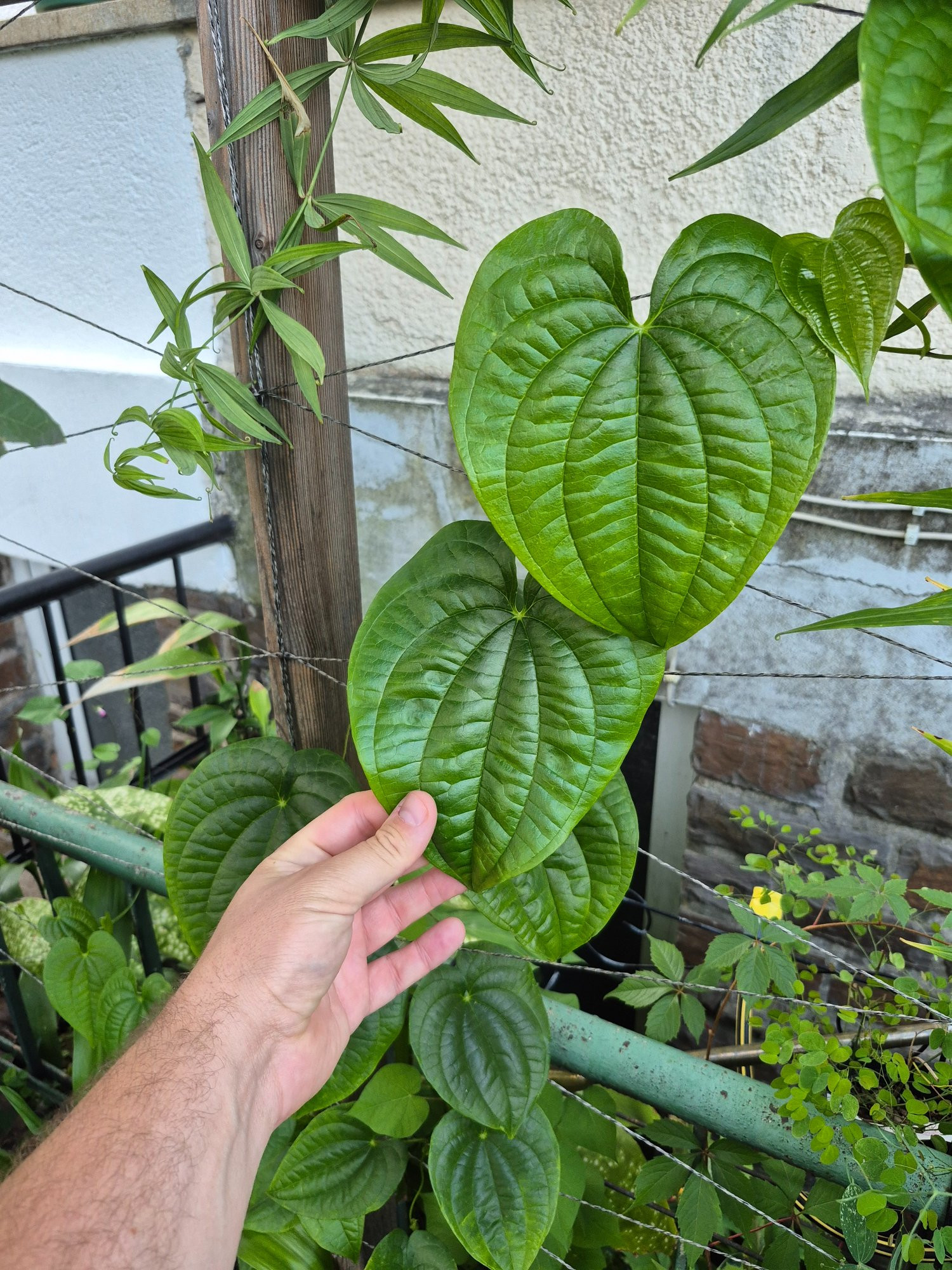 Dioscorea bulbifera legt mit etwas mehr Wurzelraum alle Sitten ab. So riesige Blätter hatte ich noch nie!