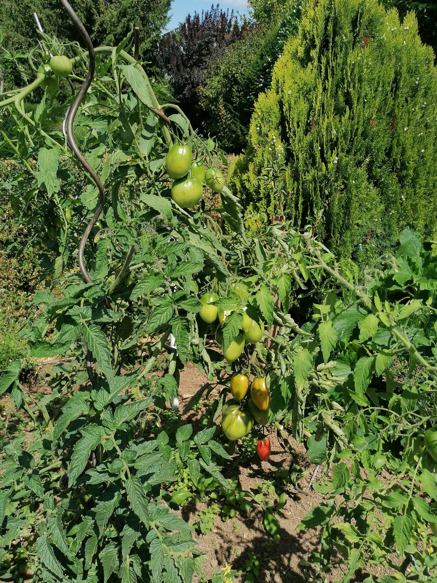 Ja, hat alles 2 Seiten. Bis jetzt sieht es gut aus, an einer Pflanze hab ich etwas Braunfäule entfernt. Hoffe, das stoppt jetzt bei der trockenen Hitze.