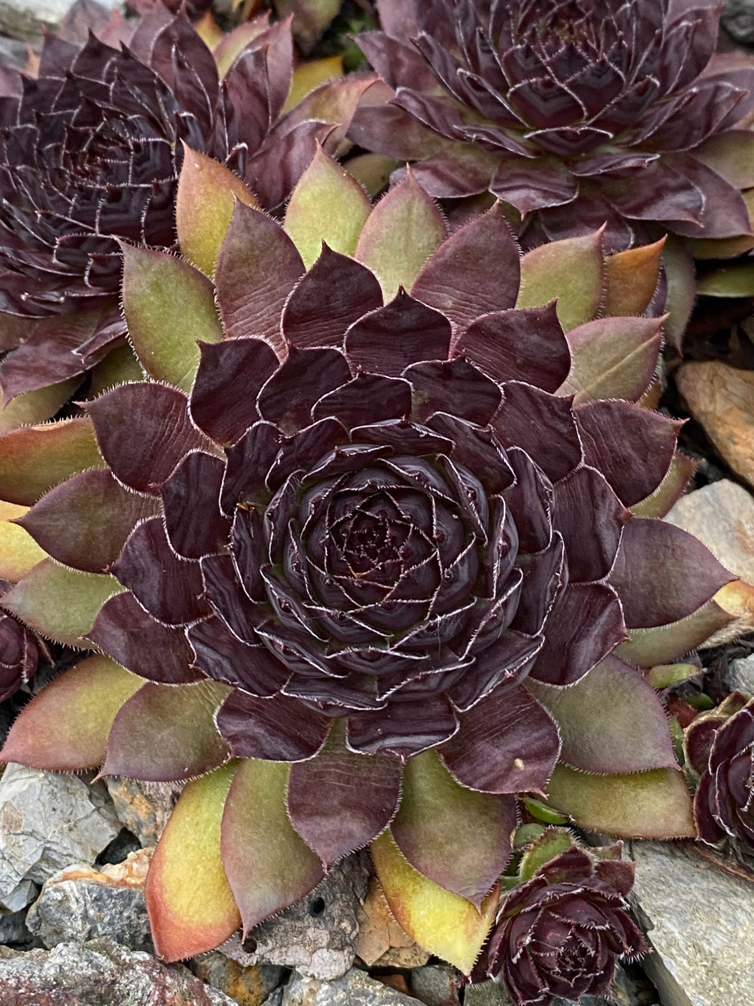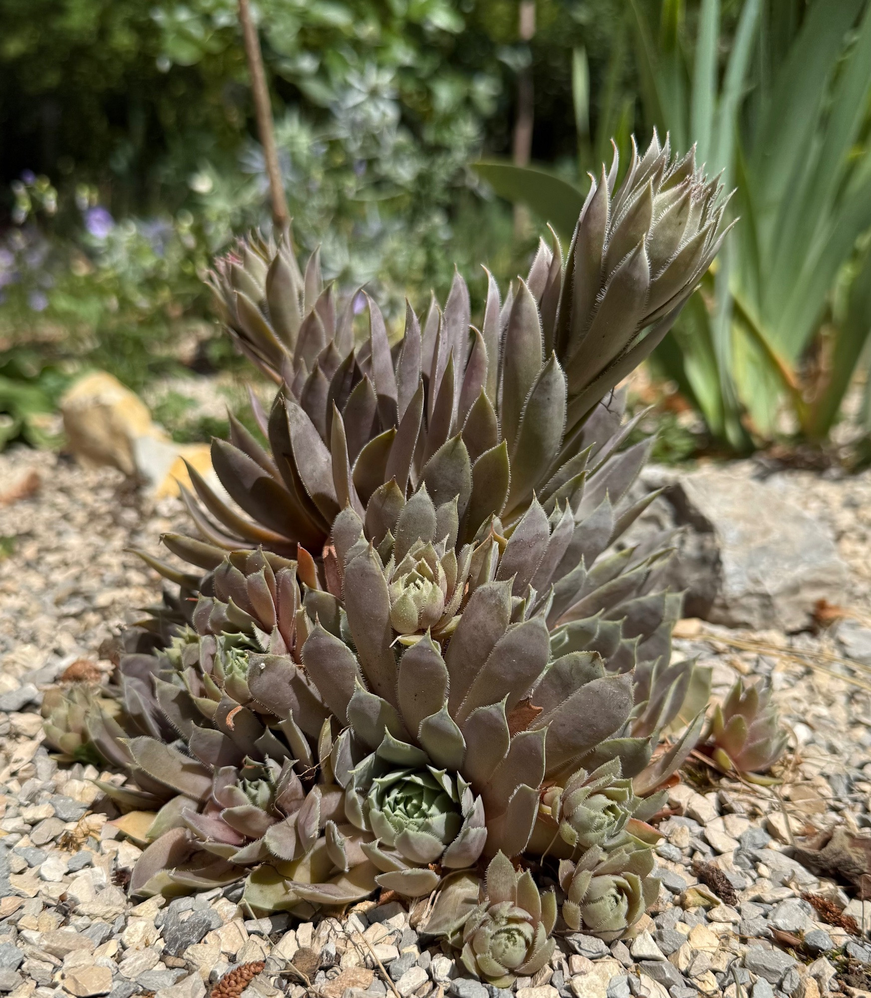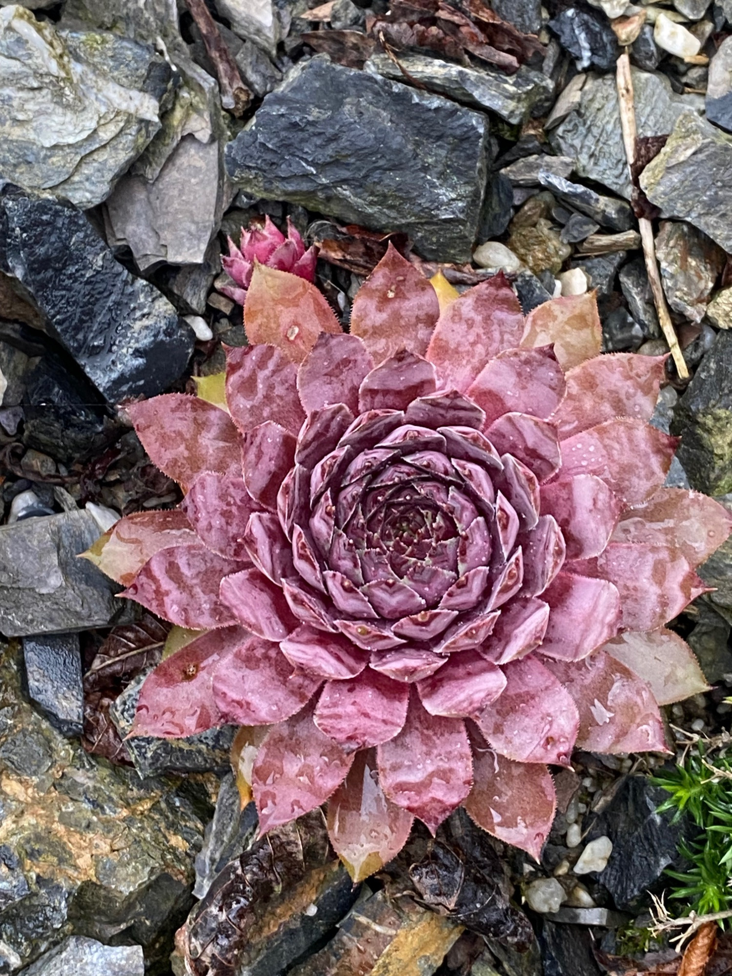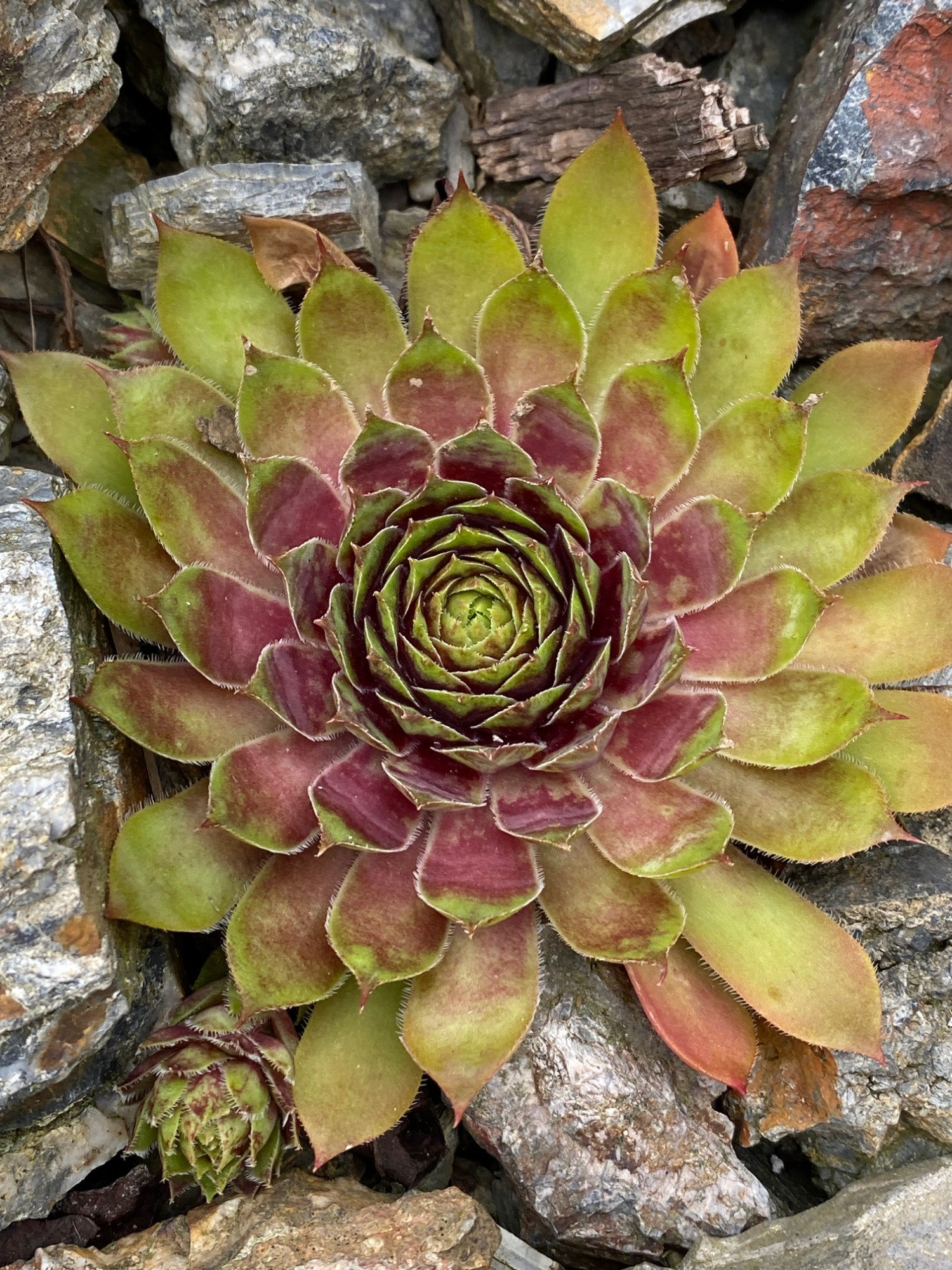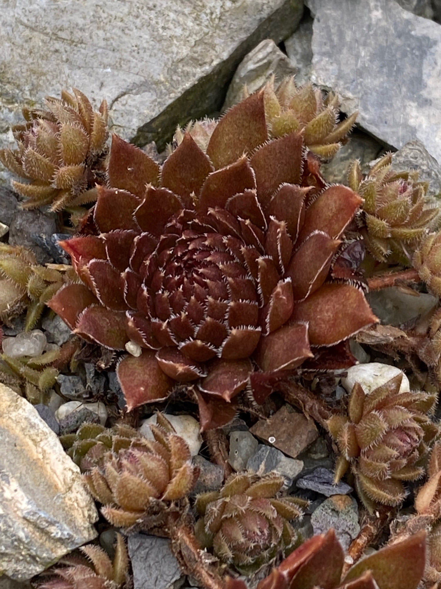 Heute habe ich versucht, sie mit einer Pflanzen-Erkennungs-App zu identifizieren, und dabei zwei unterschiedliche Ergebnisse bekommen: Sempervivum tectorum und Sempervivum calcareum.