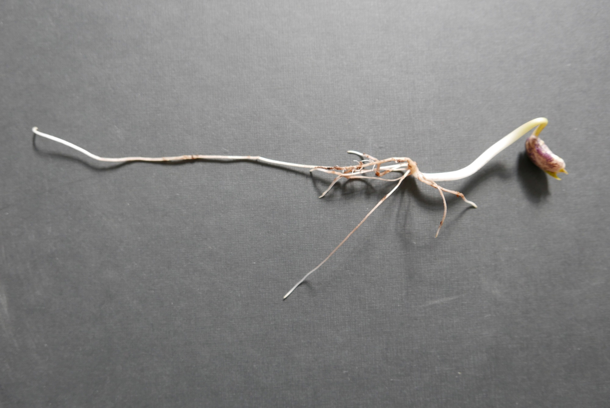 Schön hier zu sehen an der langen Wurzel, die Keimblätter beginnen sich gerade erst zu entfalten.