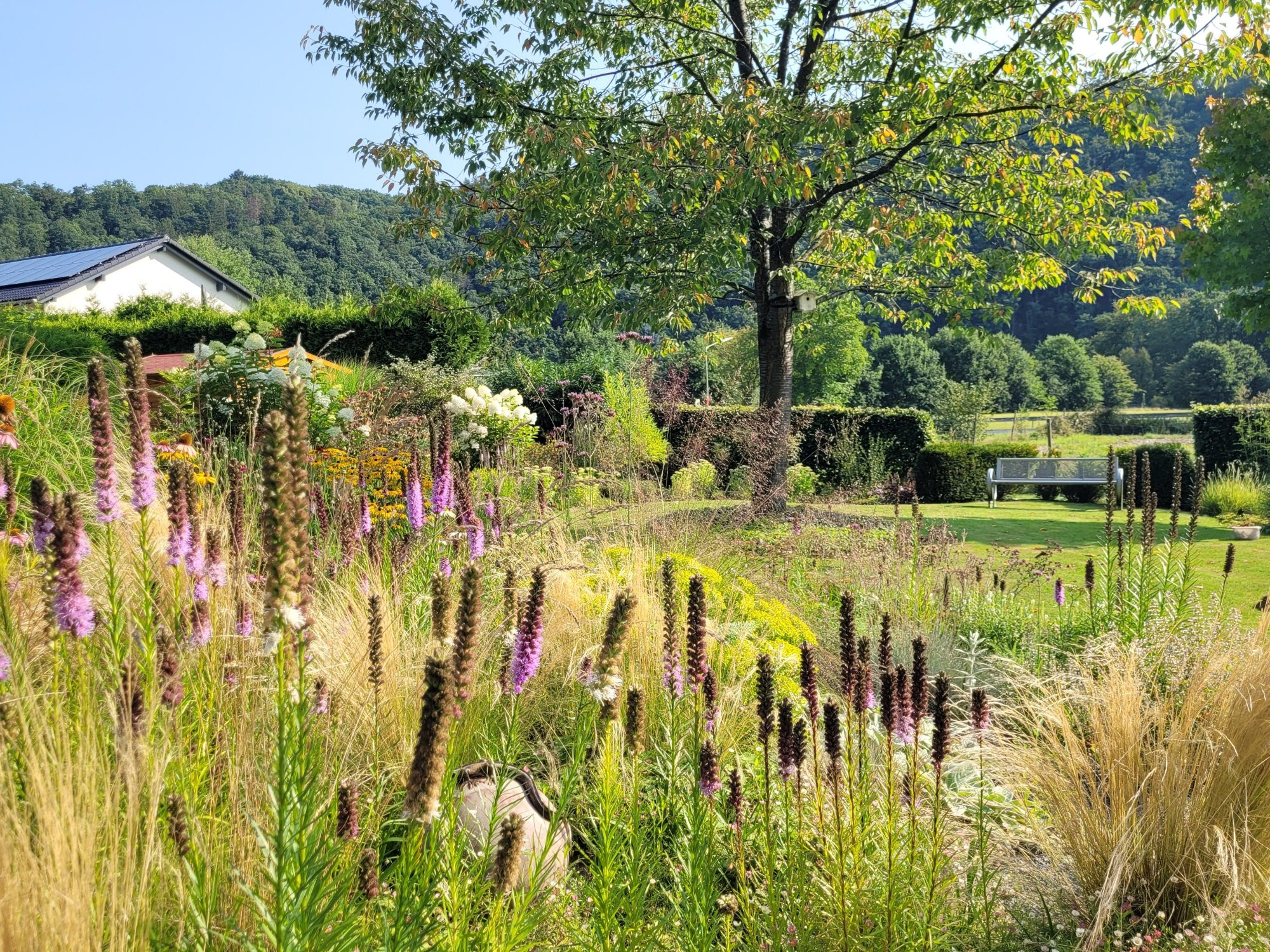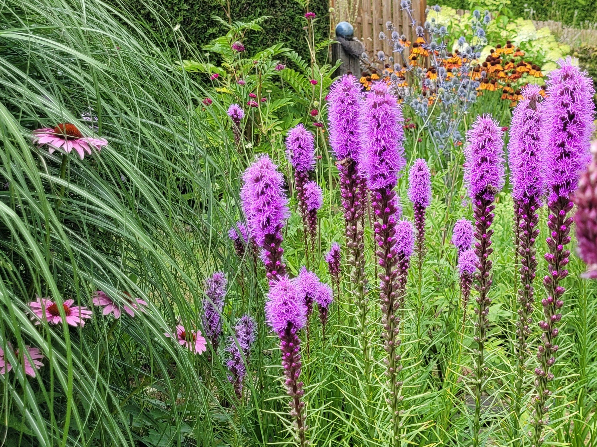 Ich habe vor einigen Jahren 3 Töpfe von Liatris spicata ins Präriebeet gesetzt. Später 3 Pflanzen der 'Floristan Weiß' ins Steppenbeet. Vielleicht vor 3 bis 4 Jahen noch je eine Tüte der normalen spicata Zwiebeln in beide Beete... geht genauso gut. Im Präriebeet gibt es noch ein paar der kleinen Liatris 'Kobold Original '. Alle haben sich gut und beständig vermehrt, die Weißen vielleicht etwas weniger.