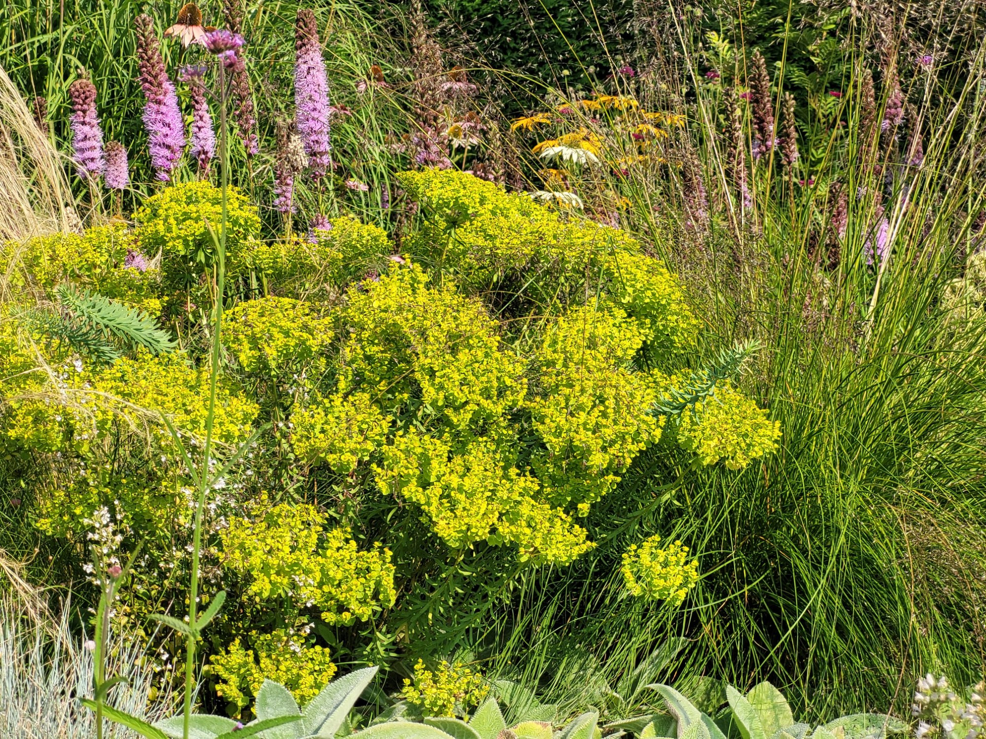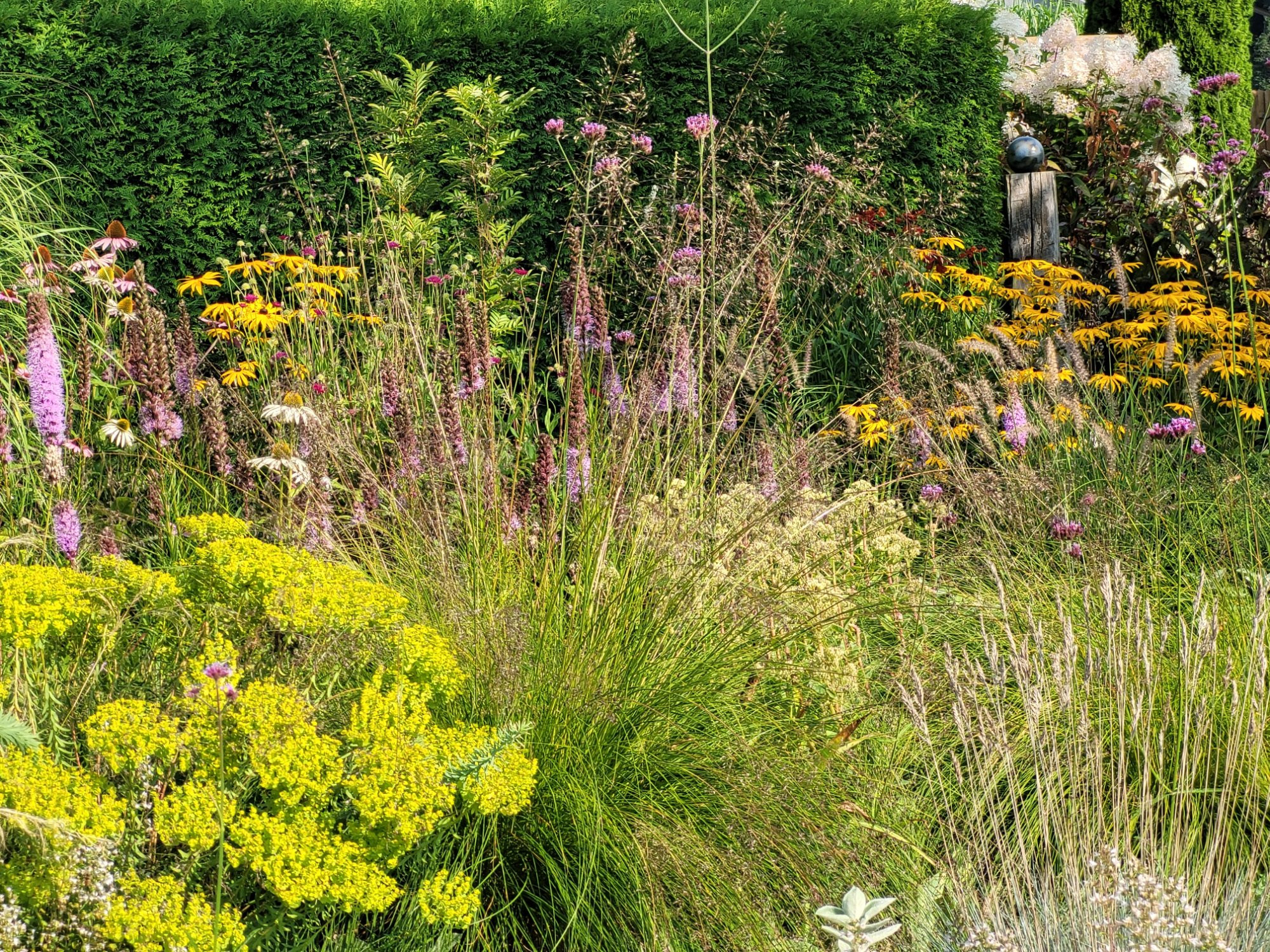Hier übernehmen nach dem Rückschnitt der Hemerocallis nun zahlreiche hohe Sedum für sie den Hofstaat. ;)