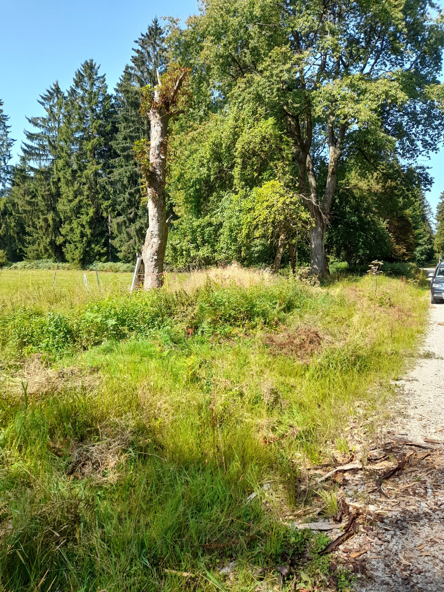 Immerhin habe ich noch 1/3 der Vosshausfläche von Farn, Johanniskraut (da ist es noch nicht so viel) und Pappelausschlägen befreit. Jetzt warte ich gerade noch auf einen Freund. Ich muss Birnen an der Scheune pflpcken. Die si d noch nicht reif, a er viel zu viel. Isolde und ich erbarmen sich. Isolde bekommt die harten Dinger genauso klein geschnitten wie mein Müsli