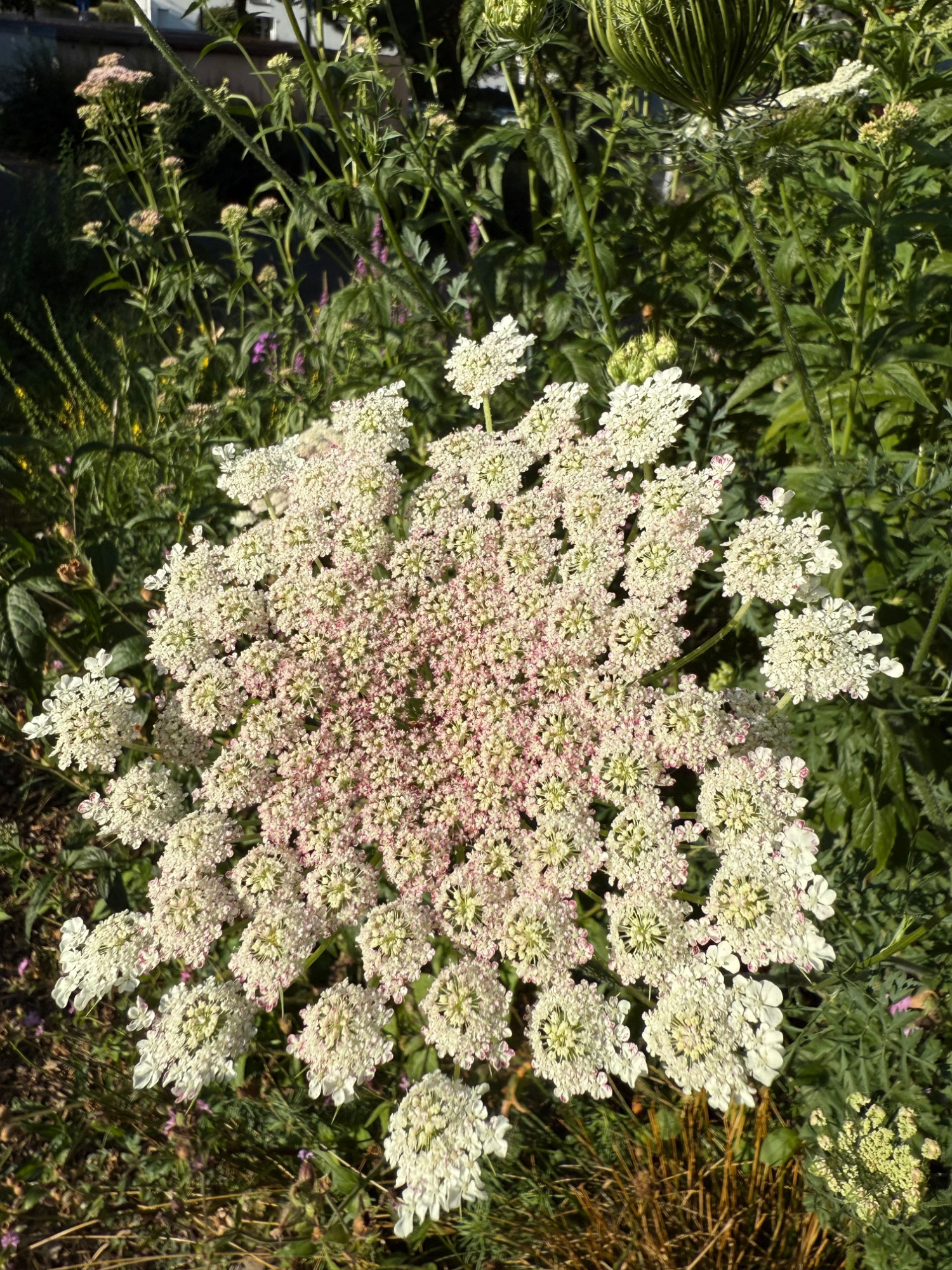 Ich bin aber immer wieder begeistert von meinem rosablütigen Bärenklau, den ich vor Jahren mal am Straßenrand fand, ausbuddelte und dessen Nachkommen seither in meinem Gärtchen und davor herumwuseln in diversen Schattierungen.
