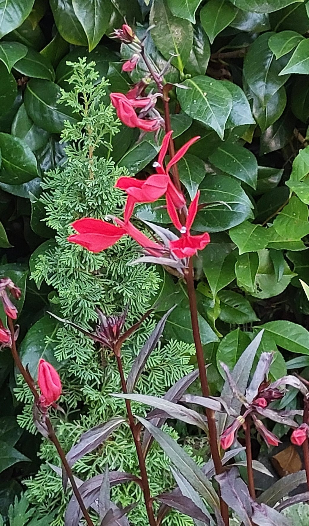 . Was ich beim Giessen nicht alles finde. Lobelia in div. Schattierungen blau und weiss. Rote Lobelia am Teich.