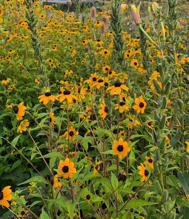 Oktobersonnenhut, Rudbeckia triloba, blüht schon voll
