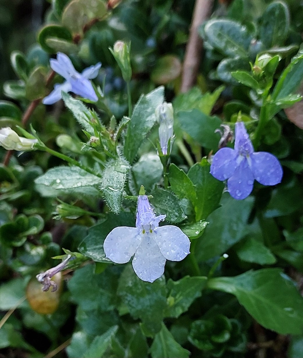 . Was ich beim Giessen nicht alles finde. Lobelia in div. Schattierungen blau und weiss. Rote Lobelia am Teich.