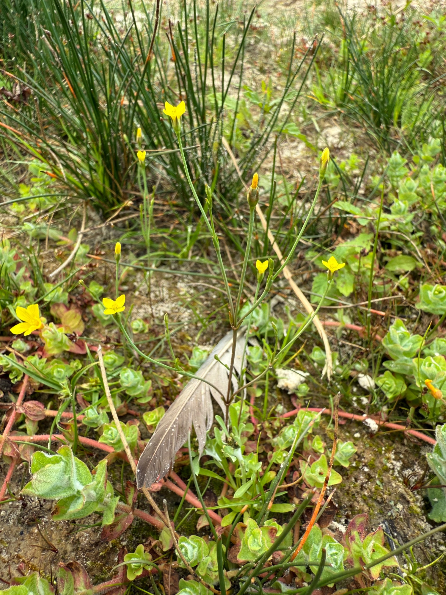 Auch gelb und an solchen Standorten beheimatet ist der Faden-Enzian (Cicendia filiformis):