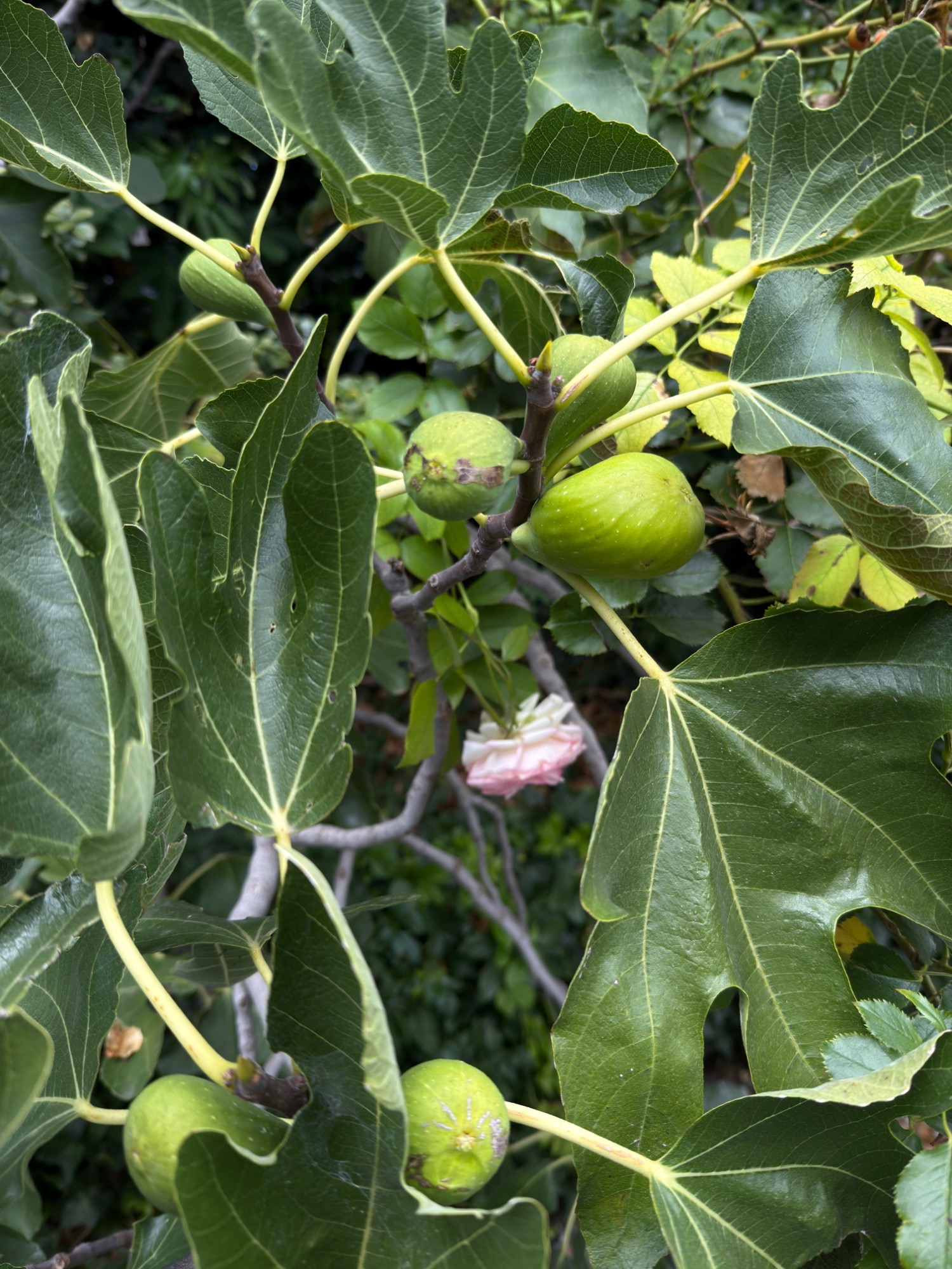 Meine weiteren Sorten sind eine unbekannte Sorte (löste meine Lust auf andere Feigen aus, trägt aber noch nicht), Ronde de Bordeaux (erst max. 3), Pastiliére (geht fast ein), Dauphine violette (einige Feigen), Panachée (keine Feigen), Peretta (nur 3), Little Miss Figgy (erstmals 1 Feige), Longe d'Aout (keine Feige), All Year Hector (fliegt nach dieser Feigenprobe raus), eine falsch verkaufte, vermutlich männliche Sorte und ein Sämling, der von selbst kam. Der beabsichtigte Wechsel auf neue Sorte dauert also ziemlich lang.