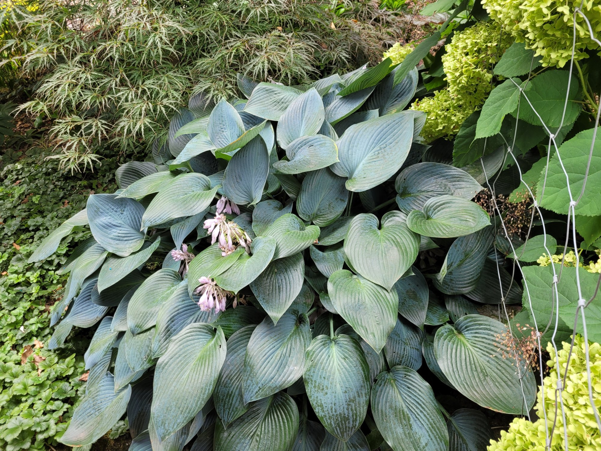 Hier sind viele Hosta noch sehr schön... hier ein paar im Kübel.