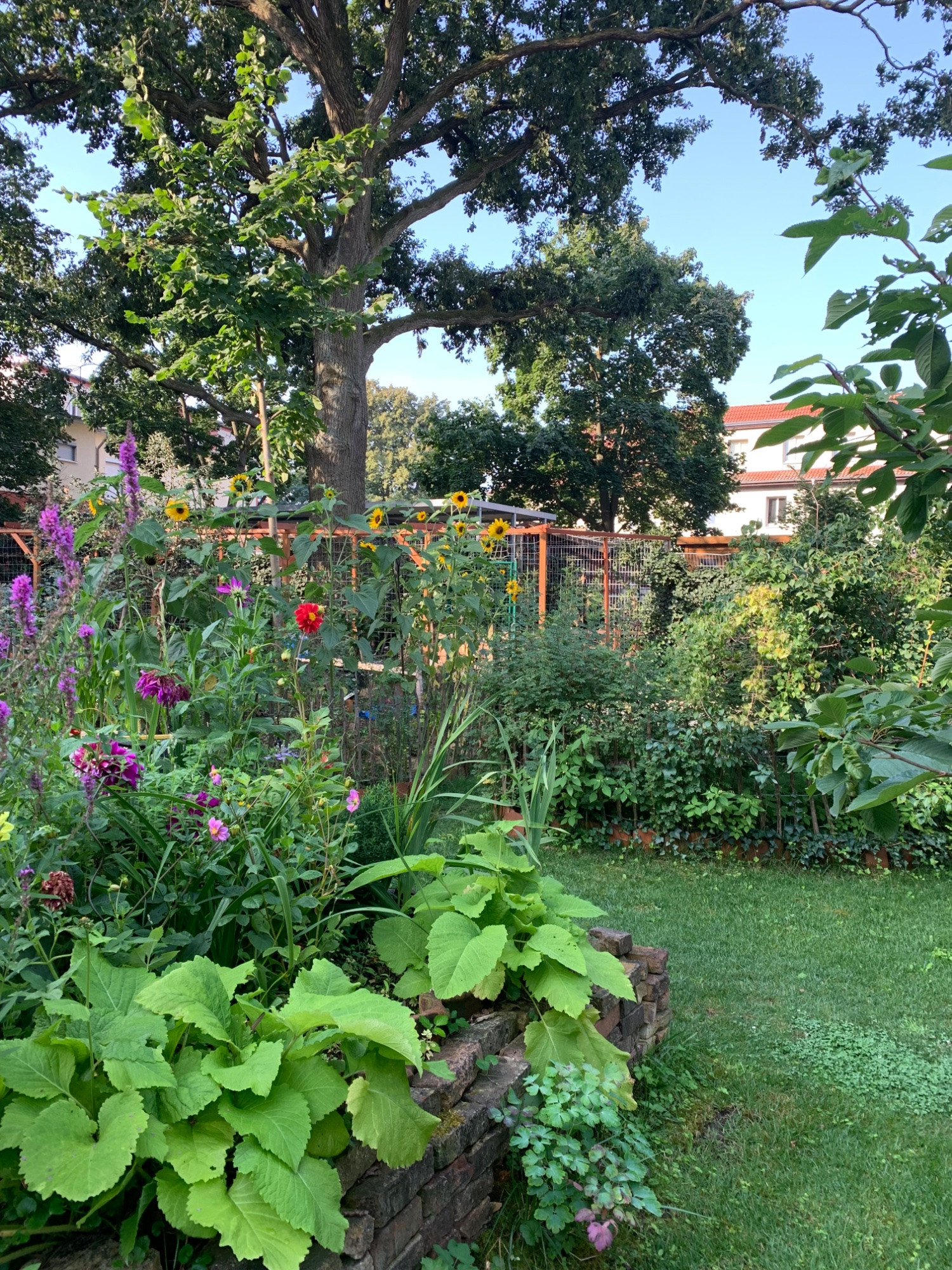 Zur Zeit ist der Garten ein bisschen verwildert und ungepflegt.