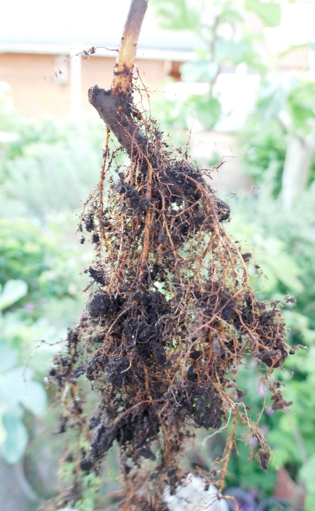 Erst dieses Jahr eine Pflanze von Quissac bestellt, aus Panik vor der BFF habe ich die Pflanze komplett von der Erde befreit und siehe da - die Wurzel ist ganz komisch gewachsen. Erst runter, dann wieder hoch, dann im Kreis rum. Hätte ich die einfach so gepflanzt dann wäre das auf Jahre ein Kuddelmuddel an der Wurzel.