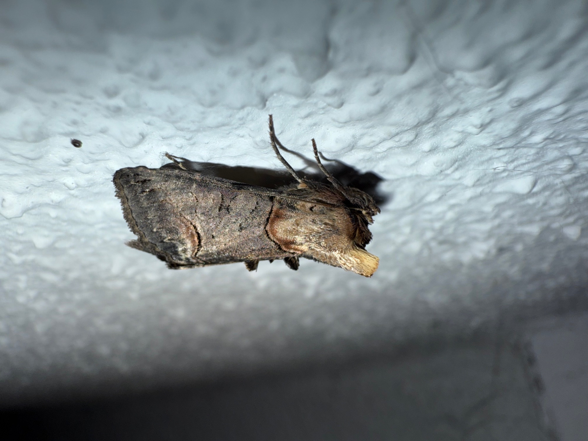 Im Haus verirrt. Dunkelgraue Nessel-Höckereule ein sehr selbsterklärender Name