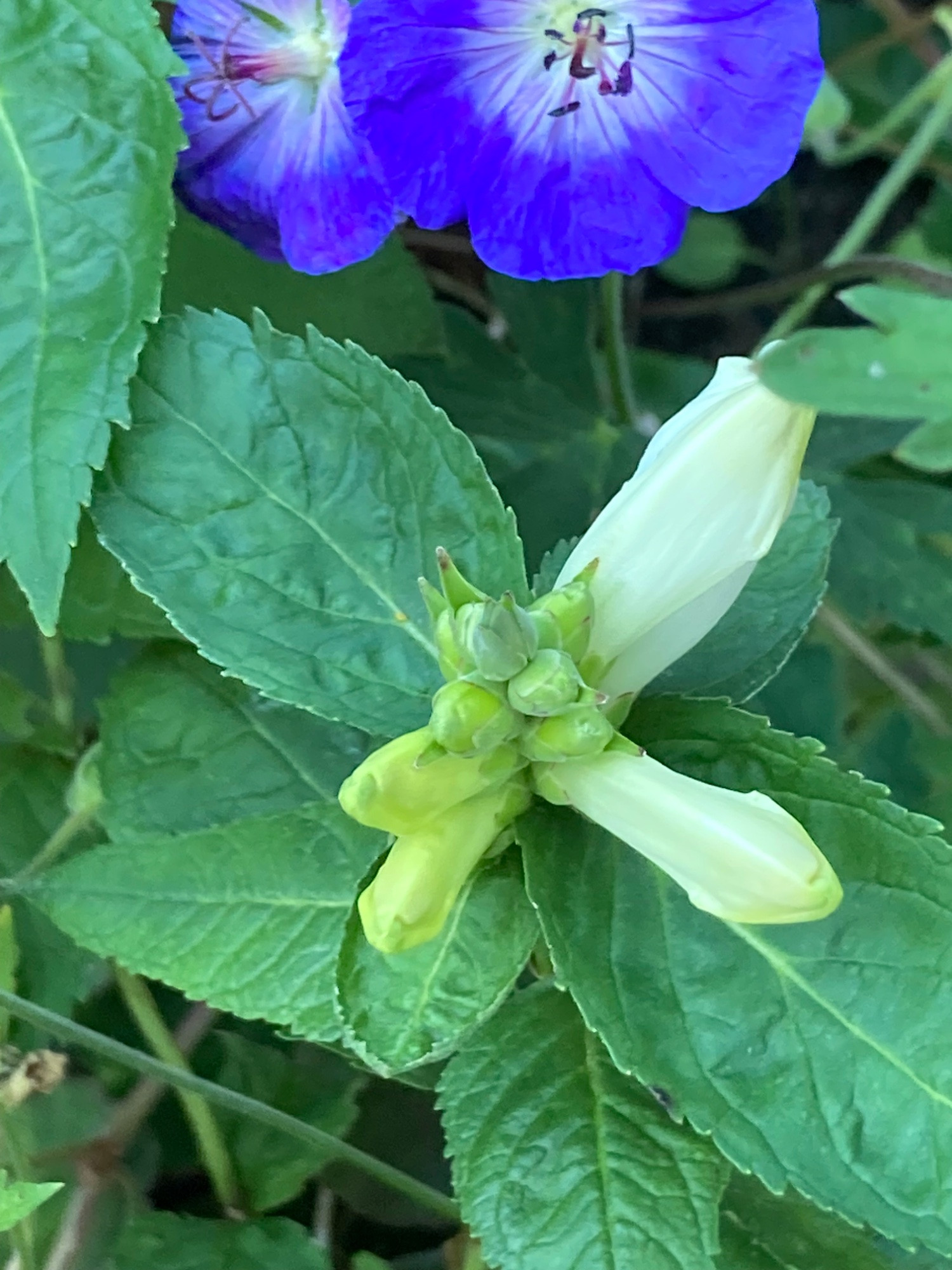 Chelone obliqua, Dauerblüher Clematis integrifolia und blühfruchtend Sambucus ebulus