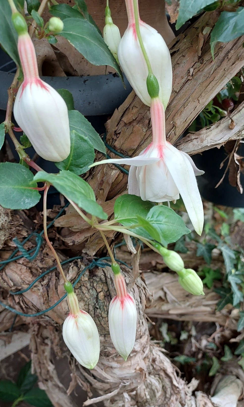2. Blüte an der weissen Fuchsie. Die Blüten werden immer grösser. Es ist eine, die ich schon 3 x überwintern konnte.