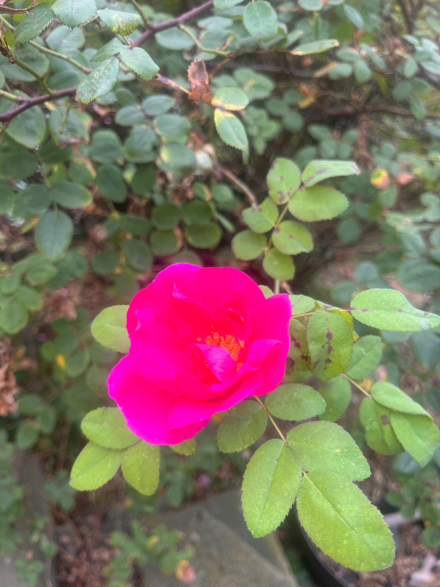 Eine kleine Chinarose, die hier im Topf steht : Scarman's Crimson China. Leider wollte das Original Crimson China, die für Sammler historischer Rosen fast unverzichtbar ist, hier gar nicht.