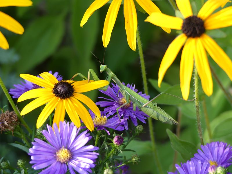 Gottesanbeterinnen sind hier in Südbrandenburg mittlerweile weit verbreitet. Man muss die Damen nur finden.