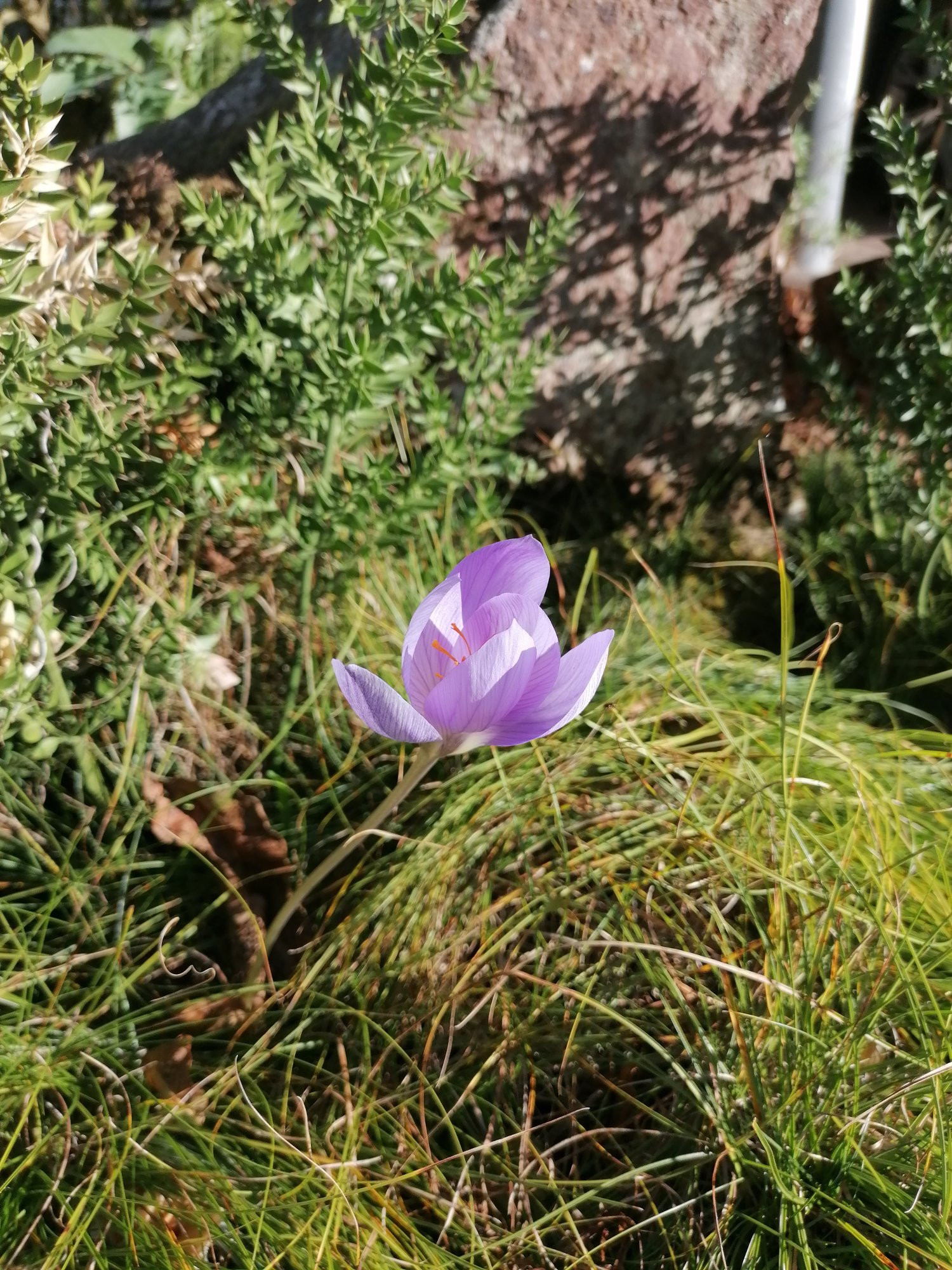 Crocus speciosus durch Carex humilis'Hexe' zu Ruscus aculeatus.
