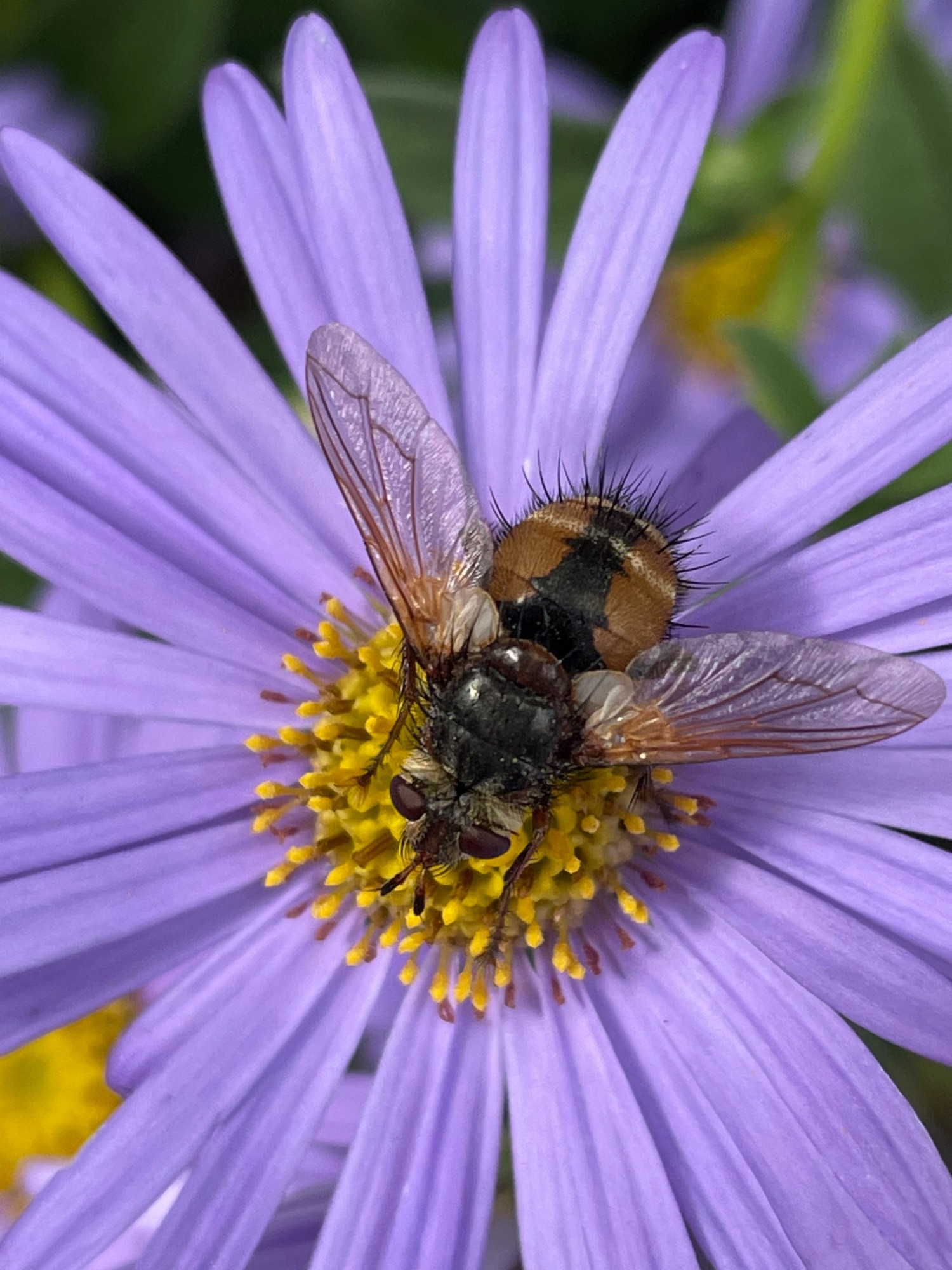 Ja, das untere auf der violetten Aster ist auf jeden Fall eine Igelfliege.