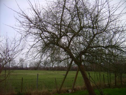Andrea...bei so wenig Platz würde ich auch überlegen, ob eher ein Rambler in Frage kommt, der nicht so riesig wird. Ich finde es immer so schade, wenn die Monsterteile durch Schnitt an dem gehindert werden, was sie eigentlich können.Als ich die ersten Rambler setzte, hatte ich Nullahnung und ignorierte gerne alle Höhenangaben. Eine Lykkefund mußte da unbedingt an einen Birnbaum, der gerade vielleicht 3 m hoch war. Nachdem ich dann merkte, dass sich von beiden nur einer durchsetzen kann, ließ ich Lykkefund machen, was sie wollte. Jetzt ist vom Baum nichts mehr zu sehen und die Rose wirkt wie ein riesiger freistehender Strauch. PHM kam an einen großen Apfelbaum, machte sich darin breit und wuchs wie alle Rambler hier vorwiegend zu einer Seite Richtung Osten. Dem sowieso etwas schiefen Baum setzte das arg zu, so dass er mittlerweile mit zwei Stützen vor dem Umkippen bewahrt werden soll. Bei starkem Sturm kommt der ungefähr 8 m hohe Baum aber trotzdem etwas ins Wackeln und so habe ich beschlossen, sollte er dann doch irgendwann umfallen, kann der Rambler einfach so weiterwuchern wie er möchte, ohne noch irgendeine Abstützung zu bekommen. Das geht aber eben nur, wenn man genügend Platz hat.