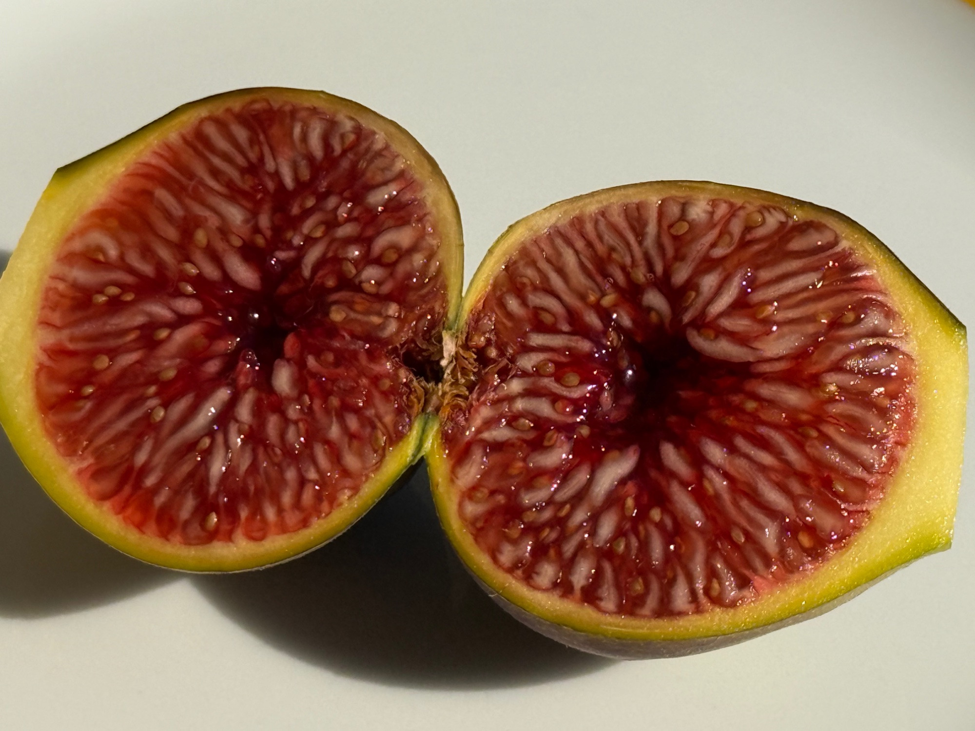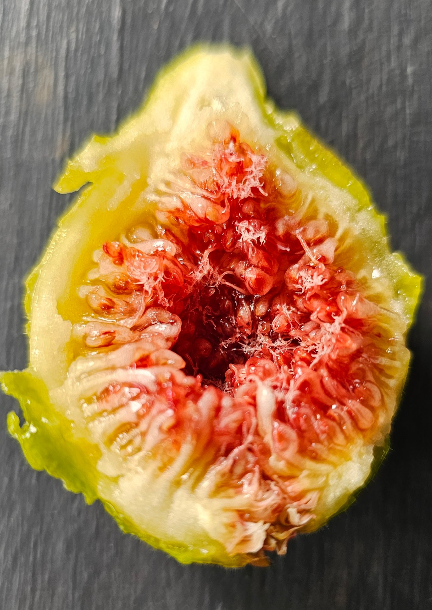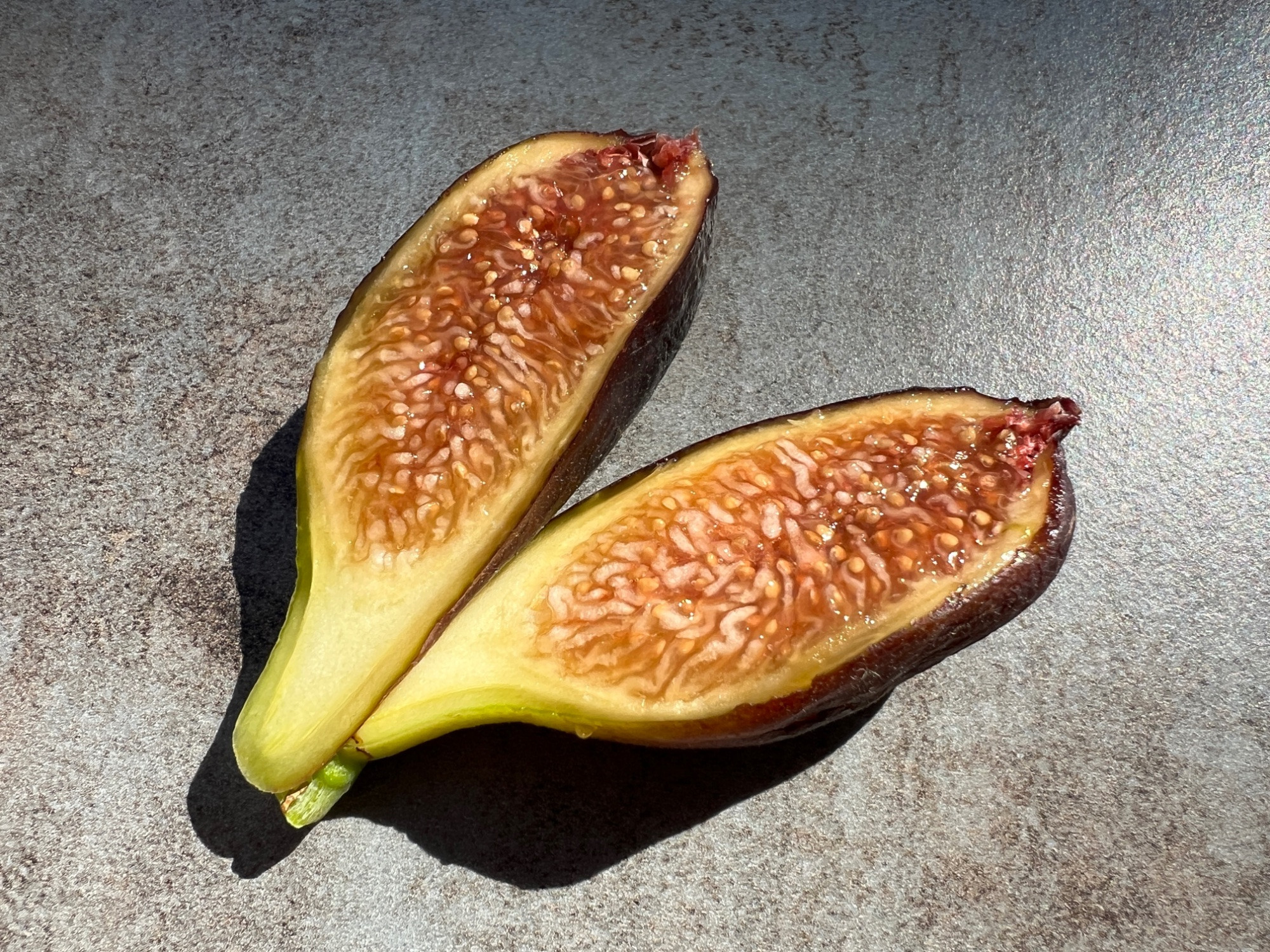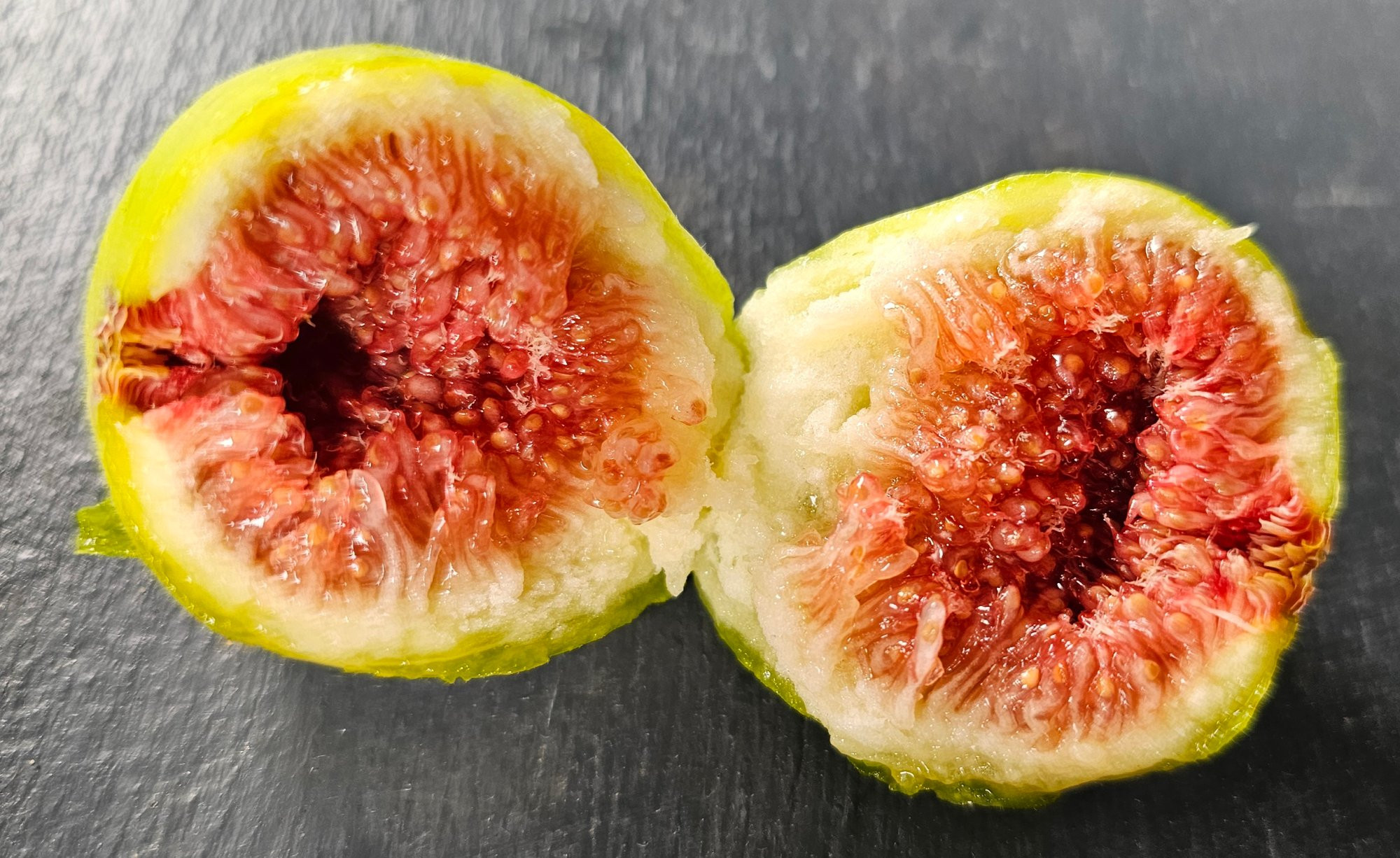 Hier Figue Jaune FDM. Die meisten haben leider eine geöffnete Ostiole, und eine von vier Feigen war auch schon innen verschimmelt.