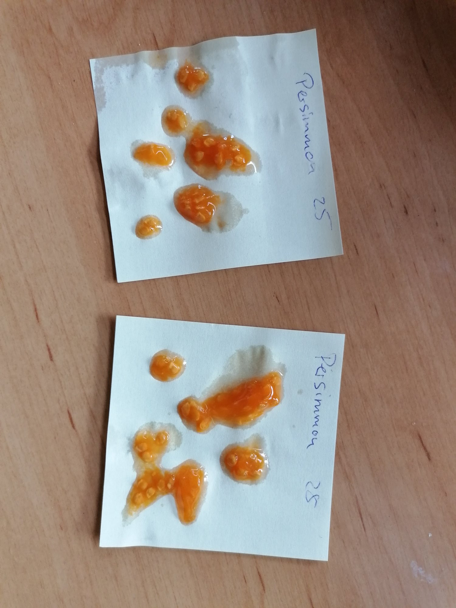 Mein Samen entnehme ich und lege sie sofort in ein Sieb. Heißes Wasser an ( knappe 50 Grad ) drüberlaufen lassen und dabei die Masse durch das Sieb quetschen. Dann ab damit auf ein beschriftetes Stück Backpapier .