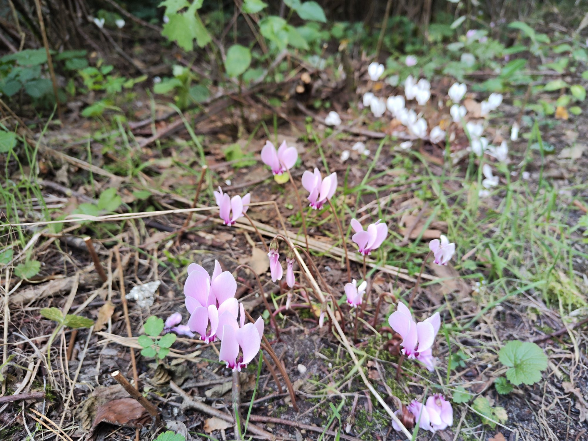 Mir wollen die Fotos der weißen Cyclamen hederifolium im Moment einfach nicht gelingen, es ist ständig zu dunkel, und auch das zehnte Bild der Kamera ist nicht richtig scharf geworden. :-\