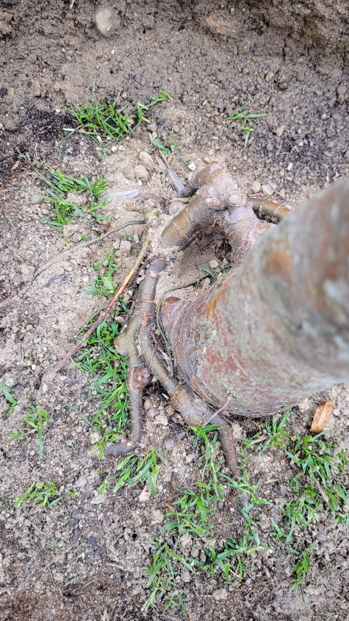 Ich habe den Baum so gepflanzt, dass diese "Luftwurzel" vollständig mit Erde bedeckt ist.