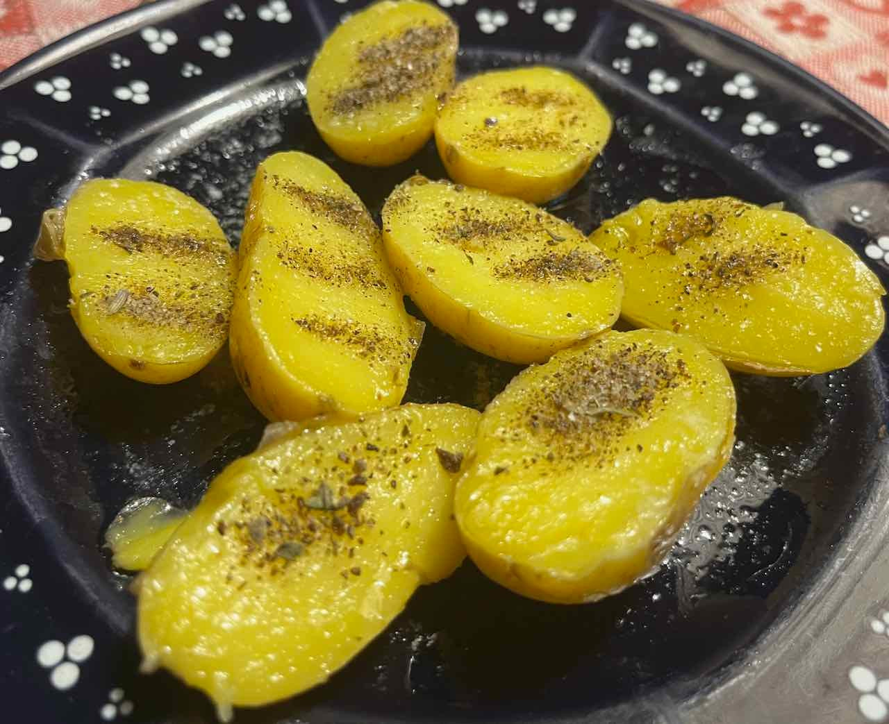 Kabeljau/Dorsch in Zitronenbutter gebraten und mit Weißwein abgelöscht sowie Drillingskartoffeln gedämpft und mit Butter und "Duft der Macchia" gewürzt zum Sauvignon blanc 2017 "Mercedes Eguren" aus Kastilien, Spanien