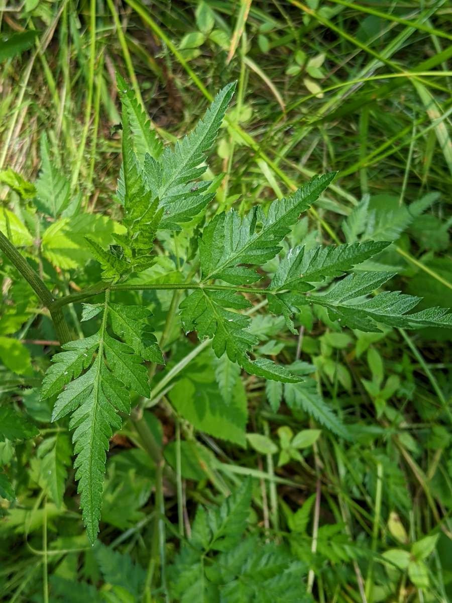 Wir haben im Juni ( 09.06. ) bei einer Wanderung im Wald bei uns hier eine merkwürdige Pflanze gesehen ....meine Vermutung war Schierling ...habe leider nur ein Blatt fotografiert ...die Pflanze war damals ca. 1,25 m hoch und blühte noch nicht