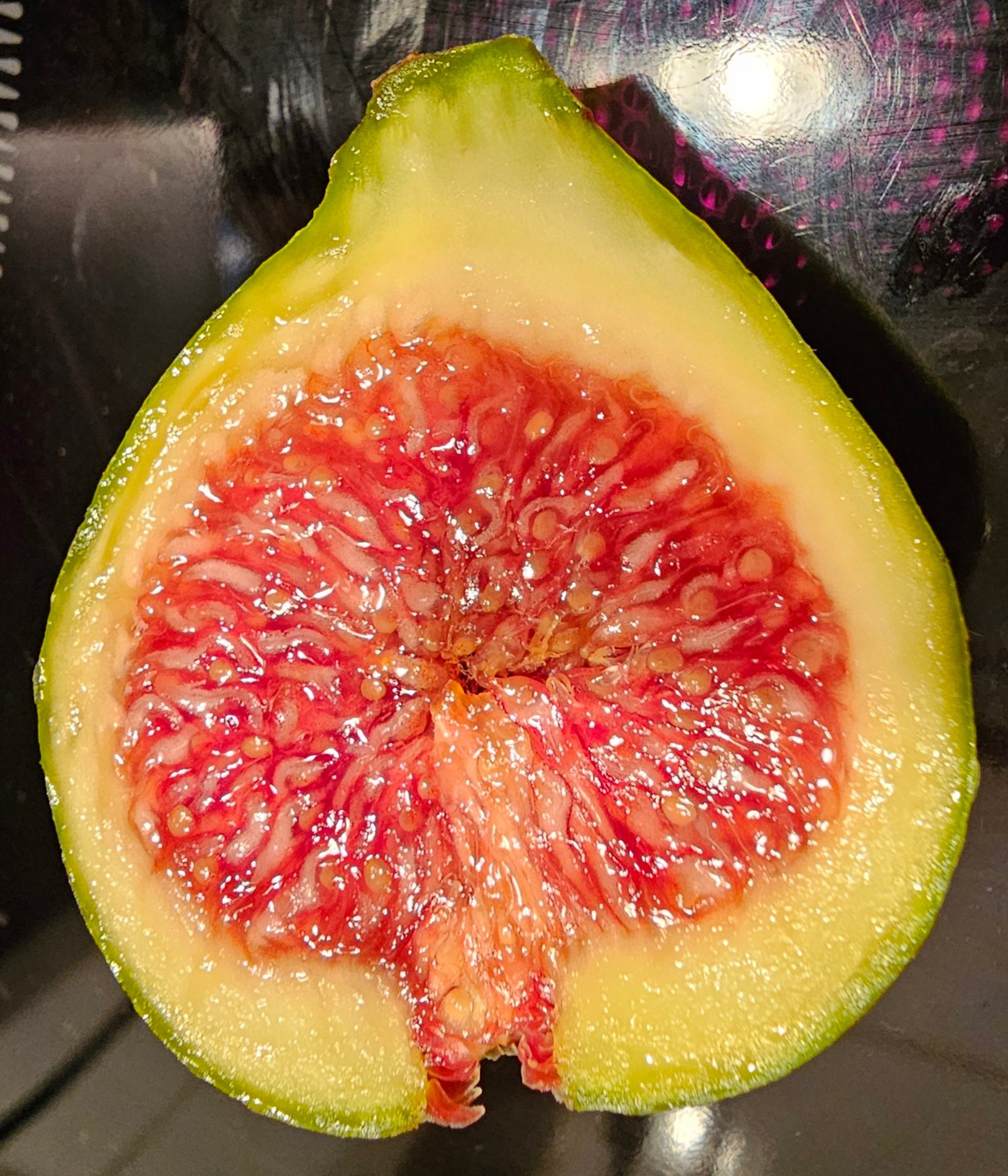 Bei dunklen Feigen mit rotem Fruchtfleisch denkt man oft an fruchtige Noten, an Aroma von roten Früchte oder Beeren (natürlich dominiert das nicht, man schmeckt allem voran die Feige, aber es ist präsent). Dieses Profil haben auch viele grüne / gelbe Feigen mit rotem Fruchtfleisch.StratoV hat geschrieben: ↑8. Sep 2025, 16:42 @ Philippus