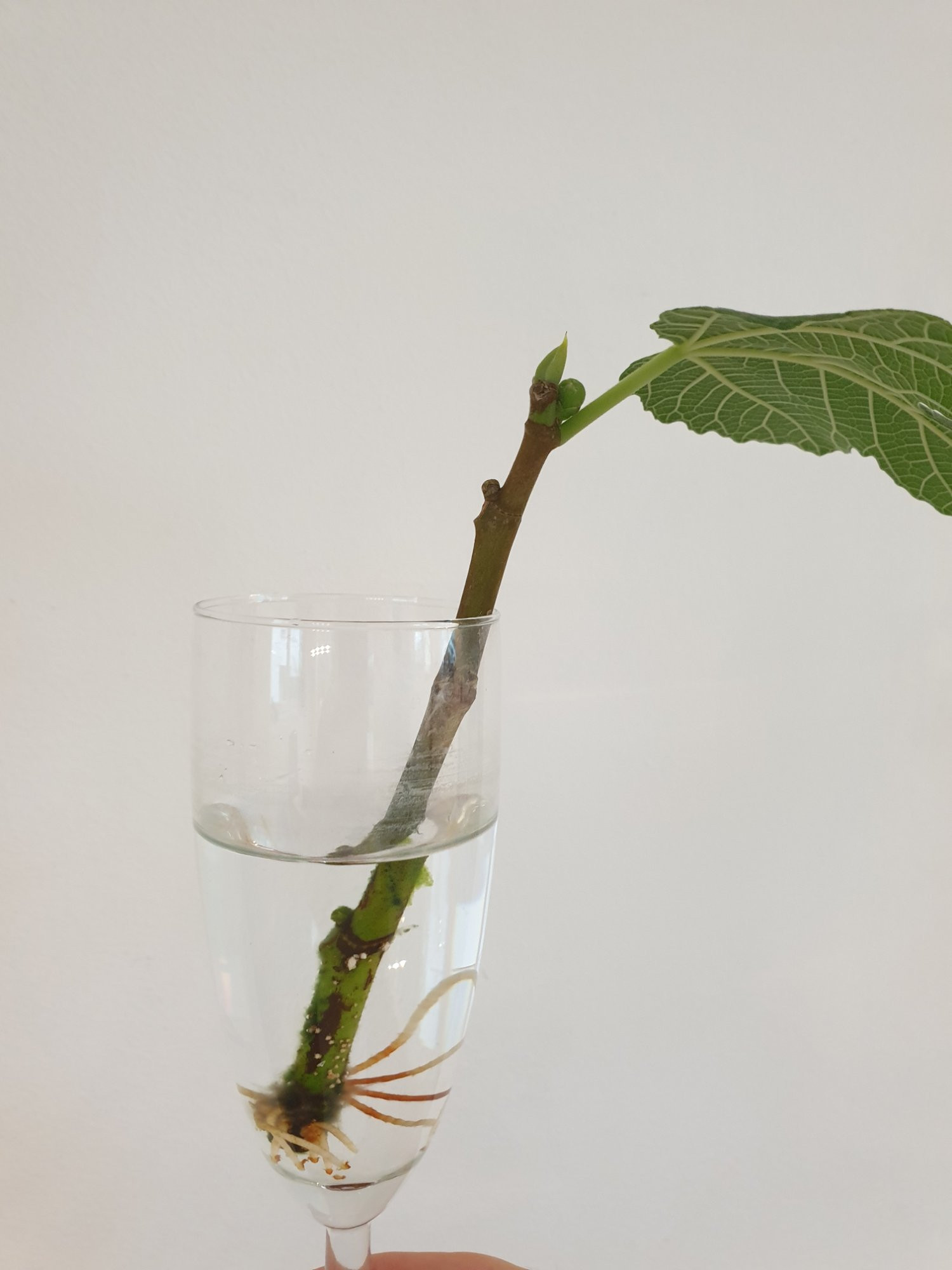 4. Aktuell habe ich ein Steckling im Wasserglas stehen. Diese Technik gefällt mir gut, weil man sieht ob Wurzeln wachsen. Wenn genug Wurzeln da sind, kann man ihn in Erde setzen. Er kann auch nicht eintrocknen, weil er ja genug Wasser hat. Wasser alle 3 Tage wechseln.