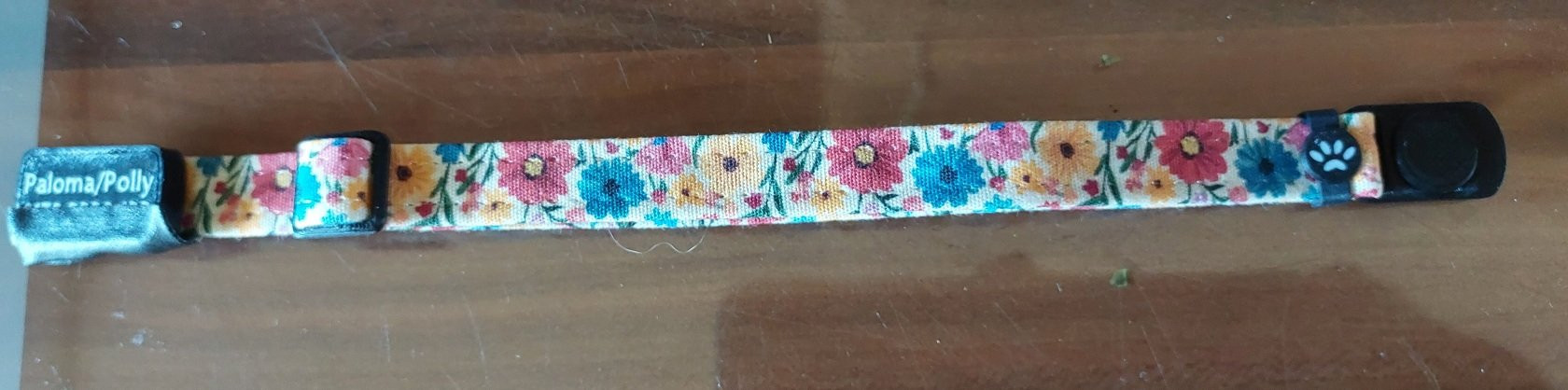 Mir liegt fern, hier Werbung machen zu wollen, aber auf eine gute Idee sollte man ruhig mal hinweisen. Das neue Sicherheitshalsband von Polly. Mit einem Magnetverschluss. Lässt sich viel besser schliessen als der andere Verschluss. Und das Band ist aus Baumwolle. Verträglicher als das aus Synthetic. Gut finde ich auch, dass ich mit meinem Kauf 5 Näpfe für Tierheimkatzen fülle. Eine ausführliche Anleitung, wie man eine Katze an das Halsband gewöhnt, lag auch noch bei.