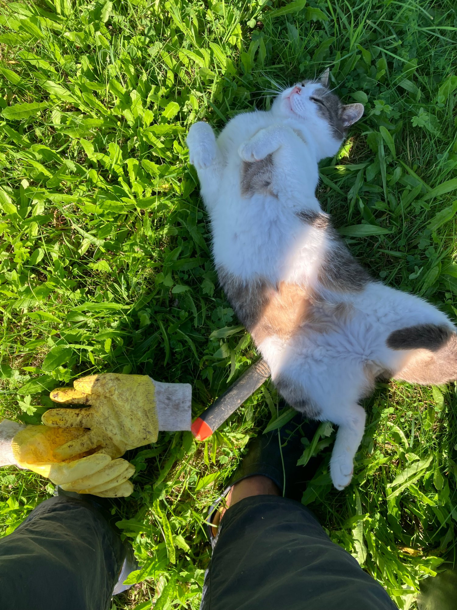 Eigentlich wollte ich in der Heuwiese Ferkelkraut ausstechen, aber jemand legte sich ständig auf den Unkrautstecher. Das hat die Sache natürlich ungemein beschleunigt