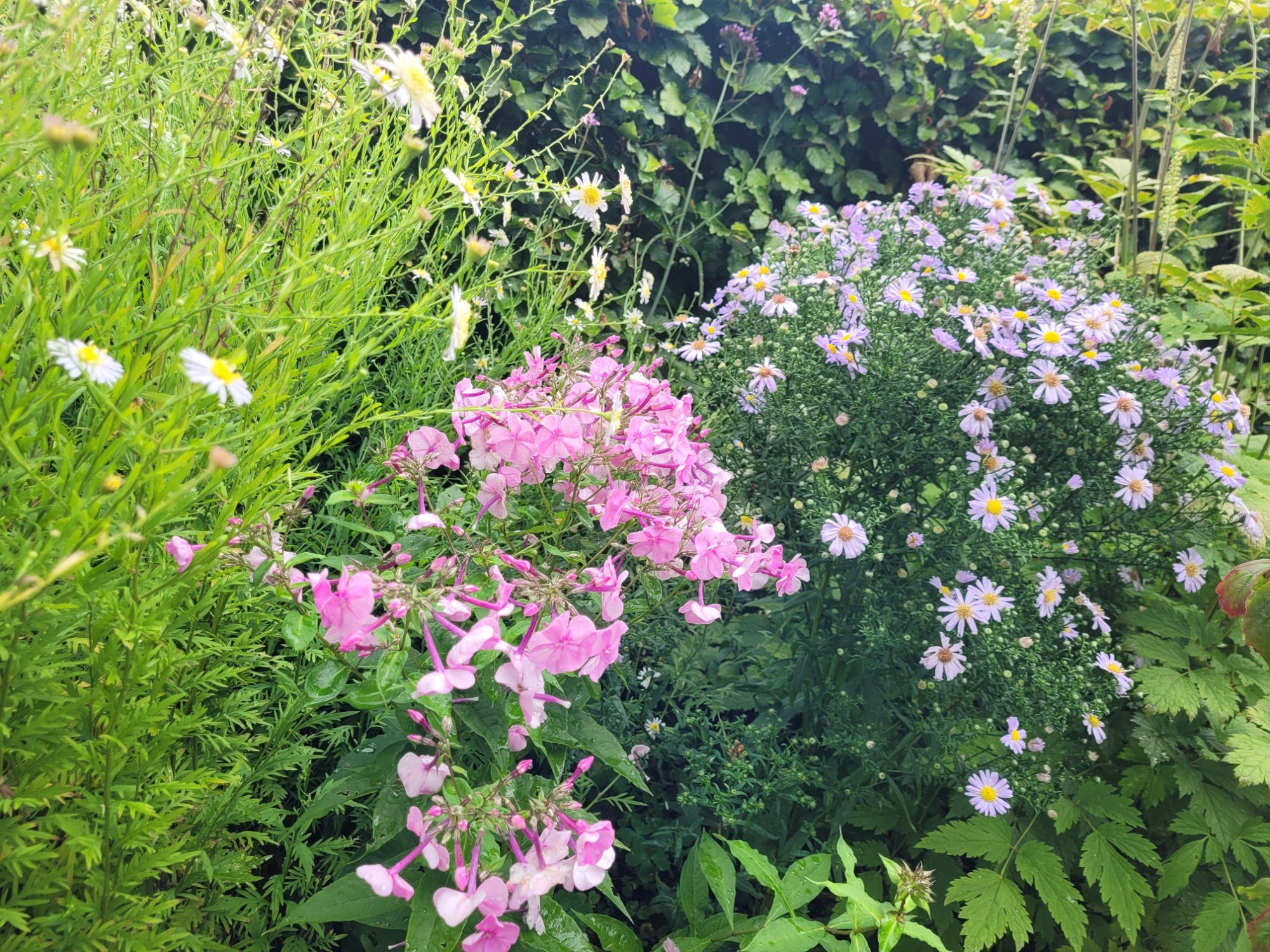 ‚Lavender Light’ sieht ja interessant aus, einmal weil so spät mit der Blüte, aber auch durch das leicht abgewandelte Weiß: die harten Phloxfarben sind oft schwer zu kombinieren, am ehesten geht da noch Weiß. Und wenn das dann nicht das typische Persilweiß ist, finde ich das definitiv ein Bonus: Danke fürs Zeigen!