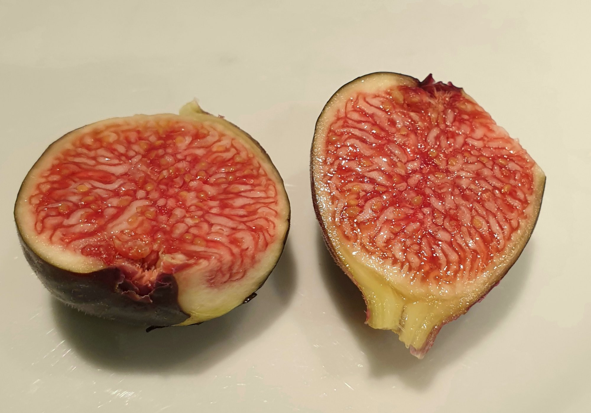 Die rote ist meine RdB. Sie ist gefühlt fast doppelt so süß, weniger saftig und der Feigenschmack wird durch die starke Süße dominiert.