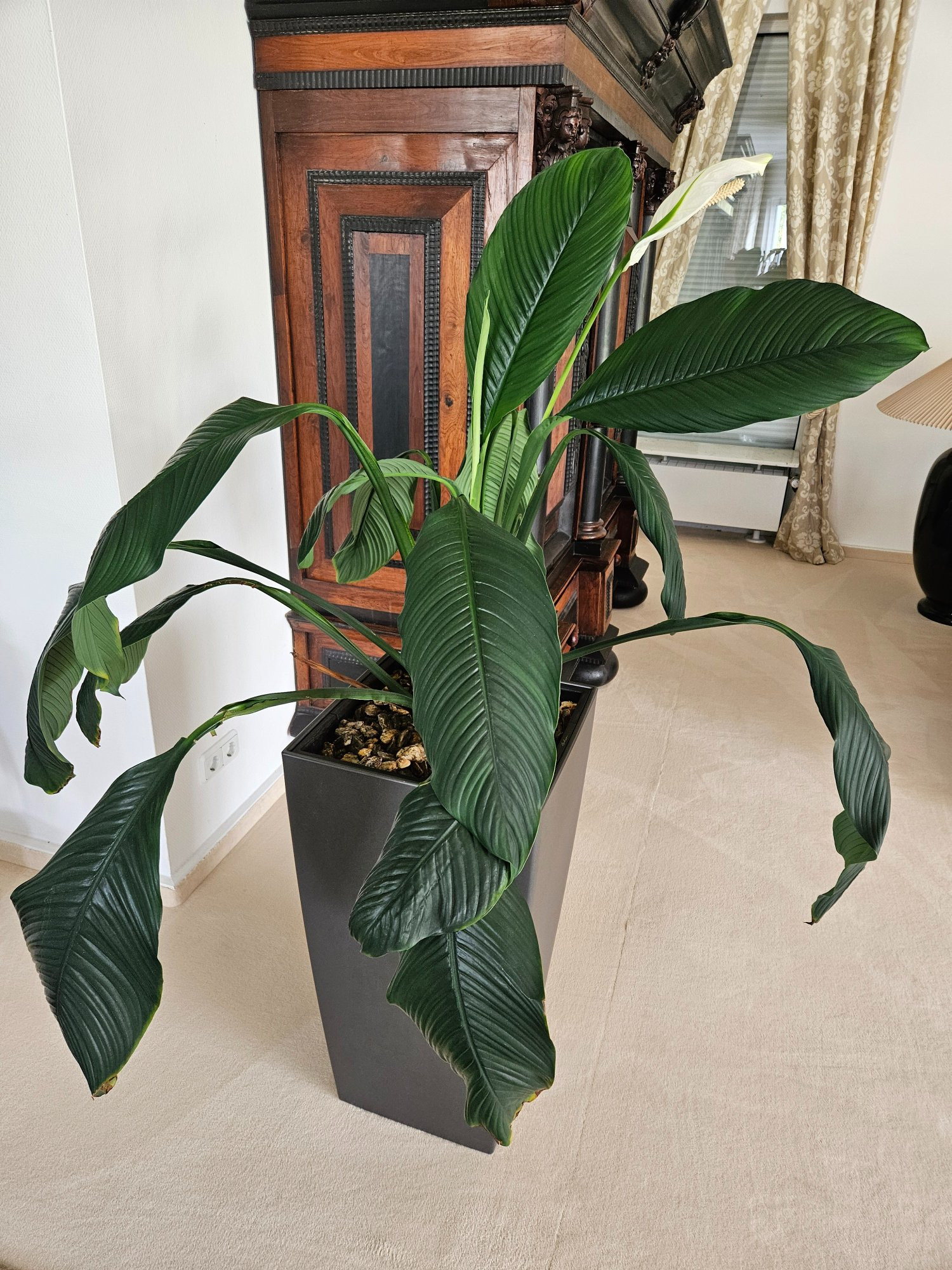 ich habe seit Jahren eine Einblatt Planze im Wohnzimmer und seit einiger Zeit lässt sie die Blätter hängen.