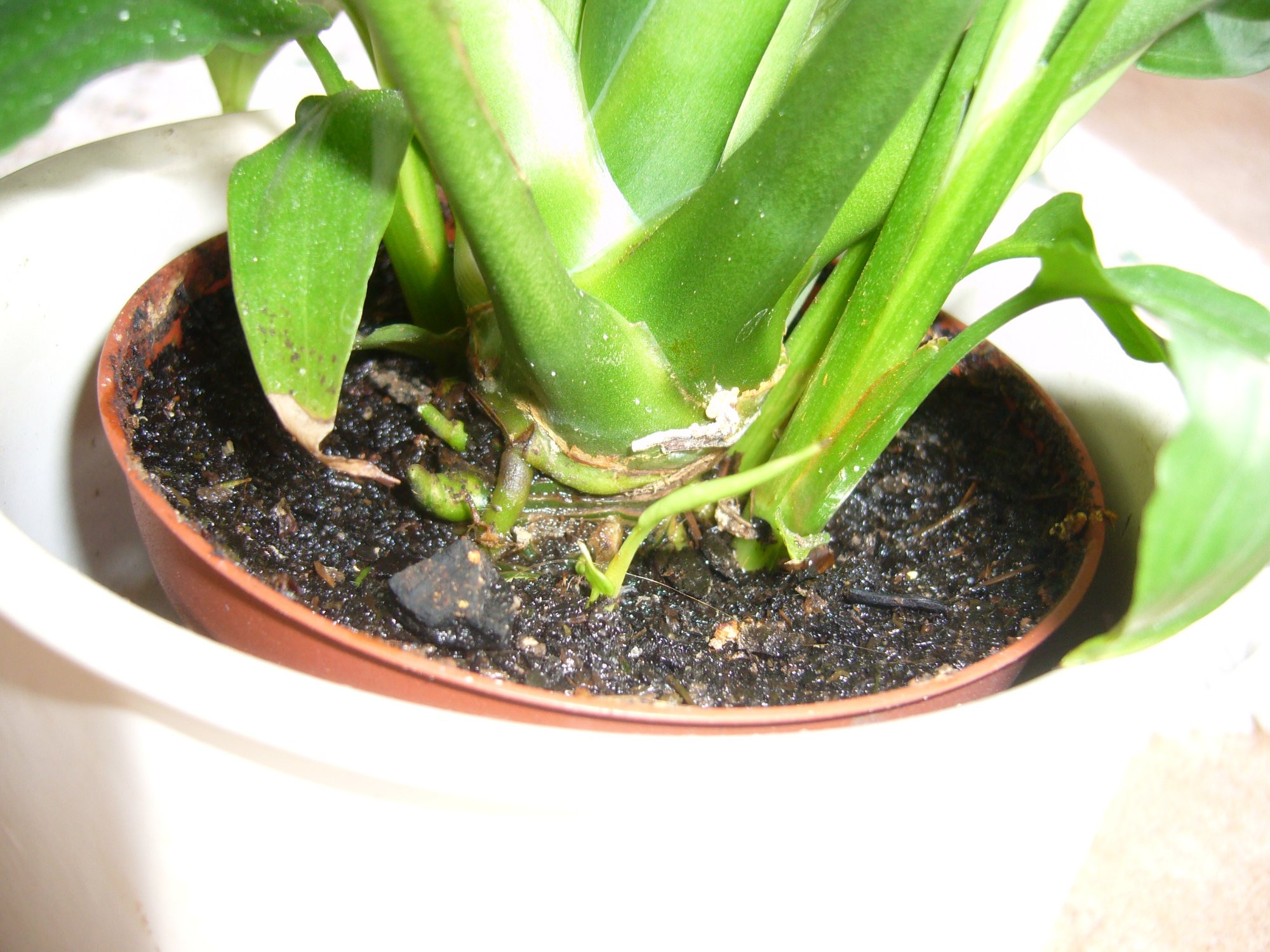 So sieht mein ältestes Einblatt aus (und leicht eingestaubt). Seit mindestens 5 Jahren nicht mehr umgetopft.