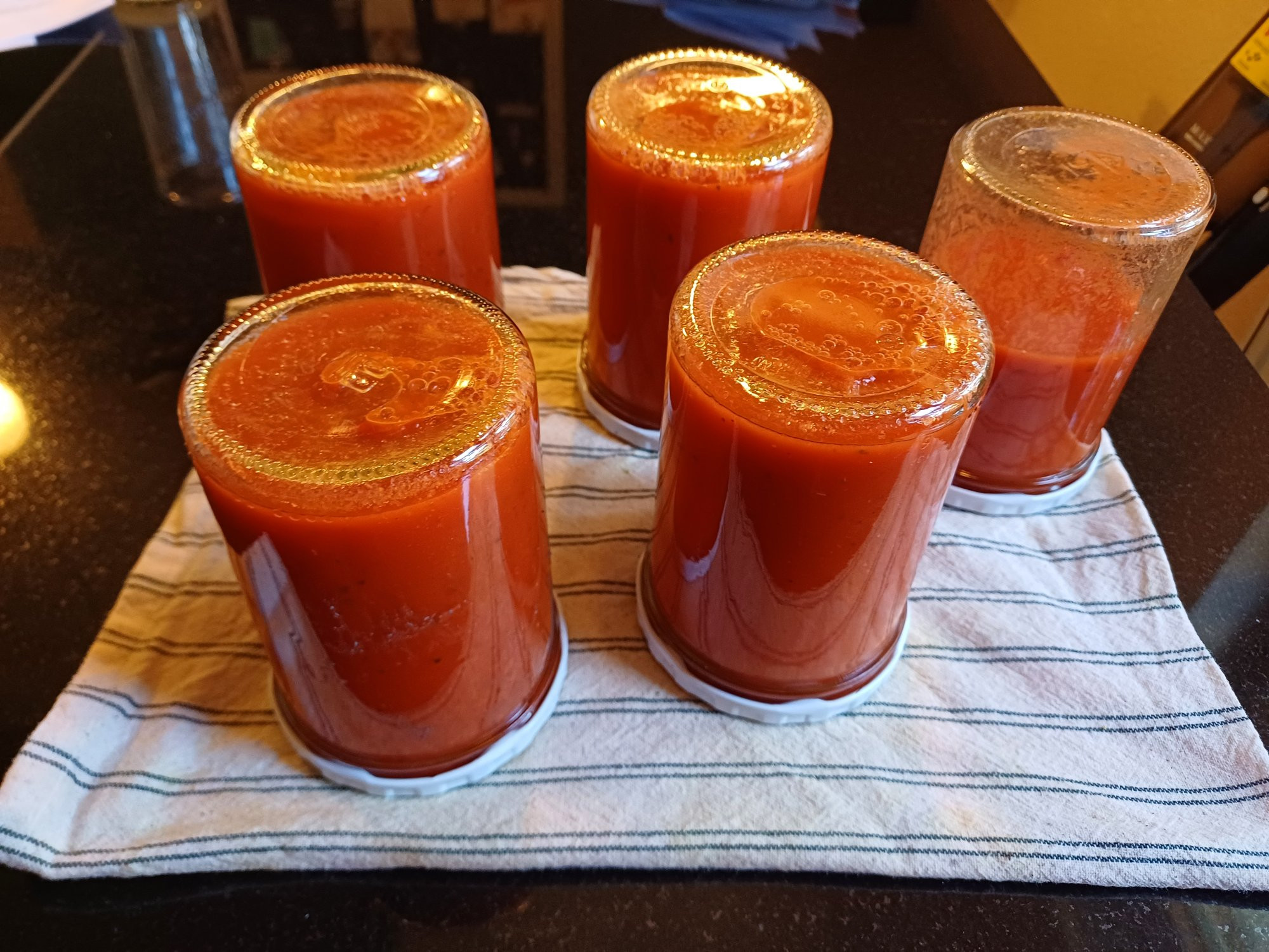 Apfelmus und Tomatensoße/-saft hab ich dieses Jahr alles nochmal richtig eingekocht. Es war gelegentlich Schimmel oben drauf nach dem öffnen letztes Jahr, trotz Unterdruck, das war sehr schade. Wobei es in der Theorie zumindest bei Tomatensoße auch gut mit Heißabfüllen gehen sollte (weil flüssiger als Mus). Vielleicht war noch irgendwas an den Deckeln dran an Schimmelsporen.
