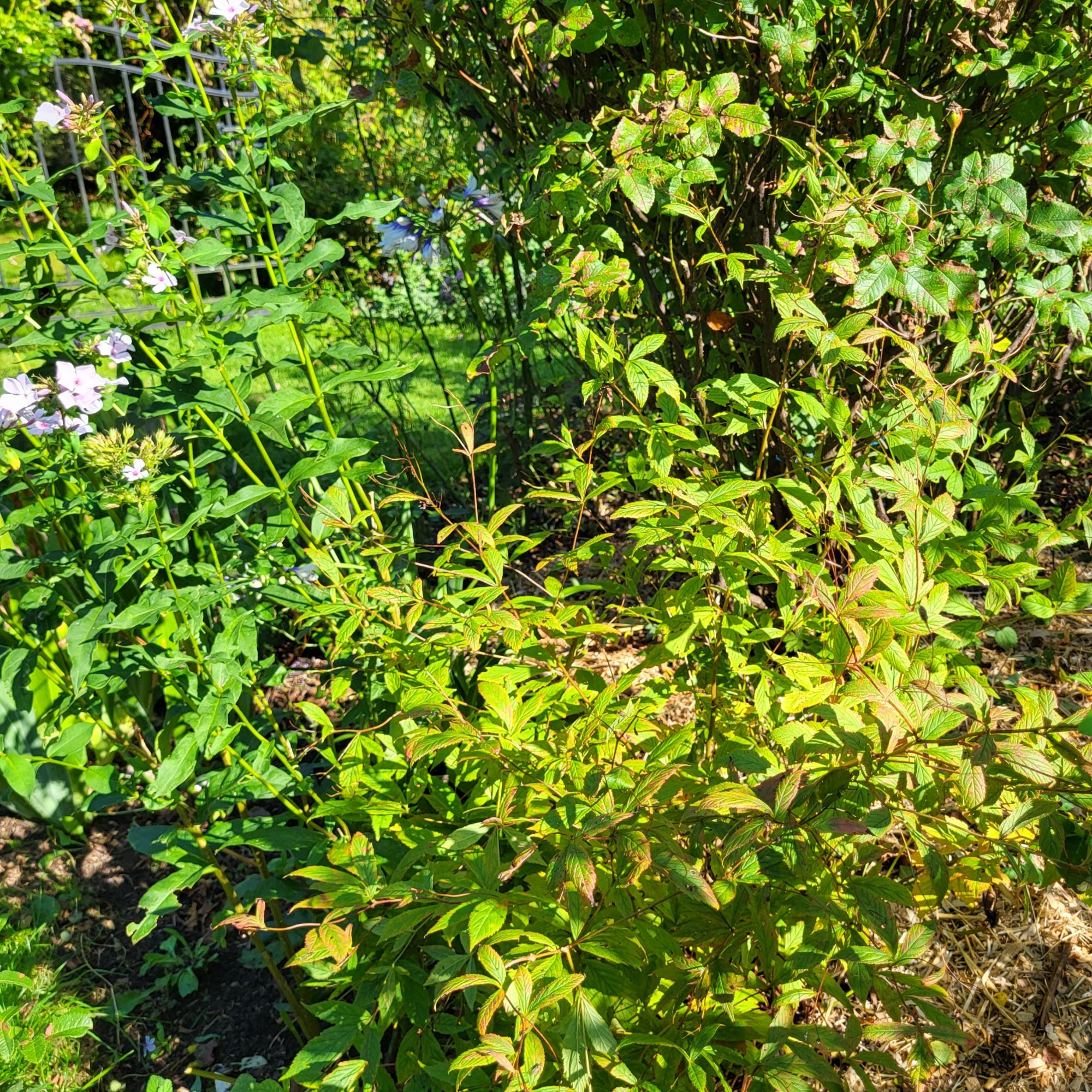 Aktuell gibt es noch keine Herbstfärbung. Interessant ist übrigens, dass mich jeder Rosenbesucher im Juni auf die Gillenia anspricht.