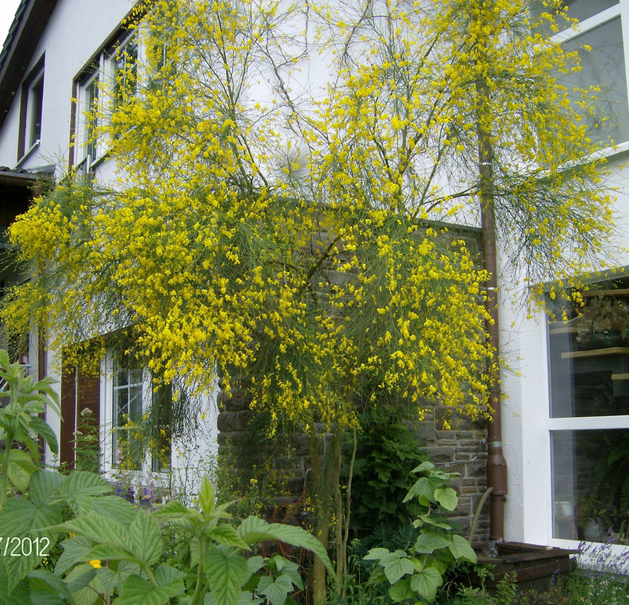 Eigentlich wollte ich vor dem Haus etwas formal streng schönes und immergrüneswie eine Zypresse setzen, weil der Ginster wirkte durch die drahtigen Ästen die herunterhängen zu Beginn etwas strubbelig, aber im Baum Alter finde ich das wiederum recht schön. Vielleicht bekommt er doch einen schönen Platz vorm Haus, mir gefällt auch sehr die Späte Blüte im Juli-August die kaum noch ein Großstrauch in unseren Breiten hat.