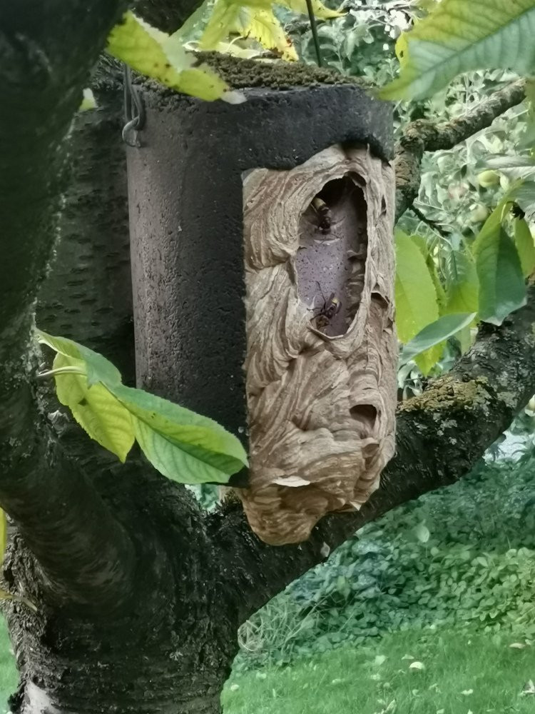 Hornissen sind hier auch die einzigen, die die asiatischen Hornissen `knacken´. Das Nest neben der Terrasse im Kirschbaum durfte deshalb bleiben.
