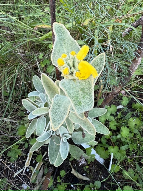 Mittlerweile pflege ich 44 Arten&Sorten Phlomis, viele in Töpfen aber auch viele härtere ausgepflanzt. Zur Zeit blüht verrückterweise P. x cytherea (Hybrid von fruticosa & cretica).